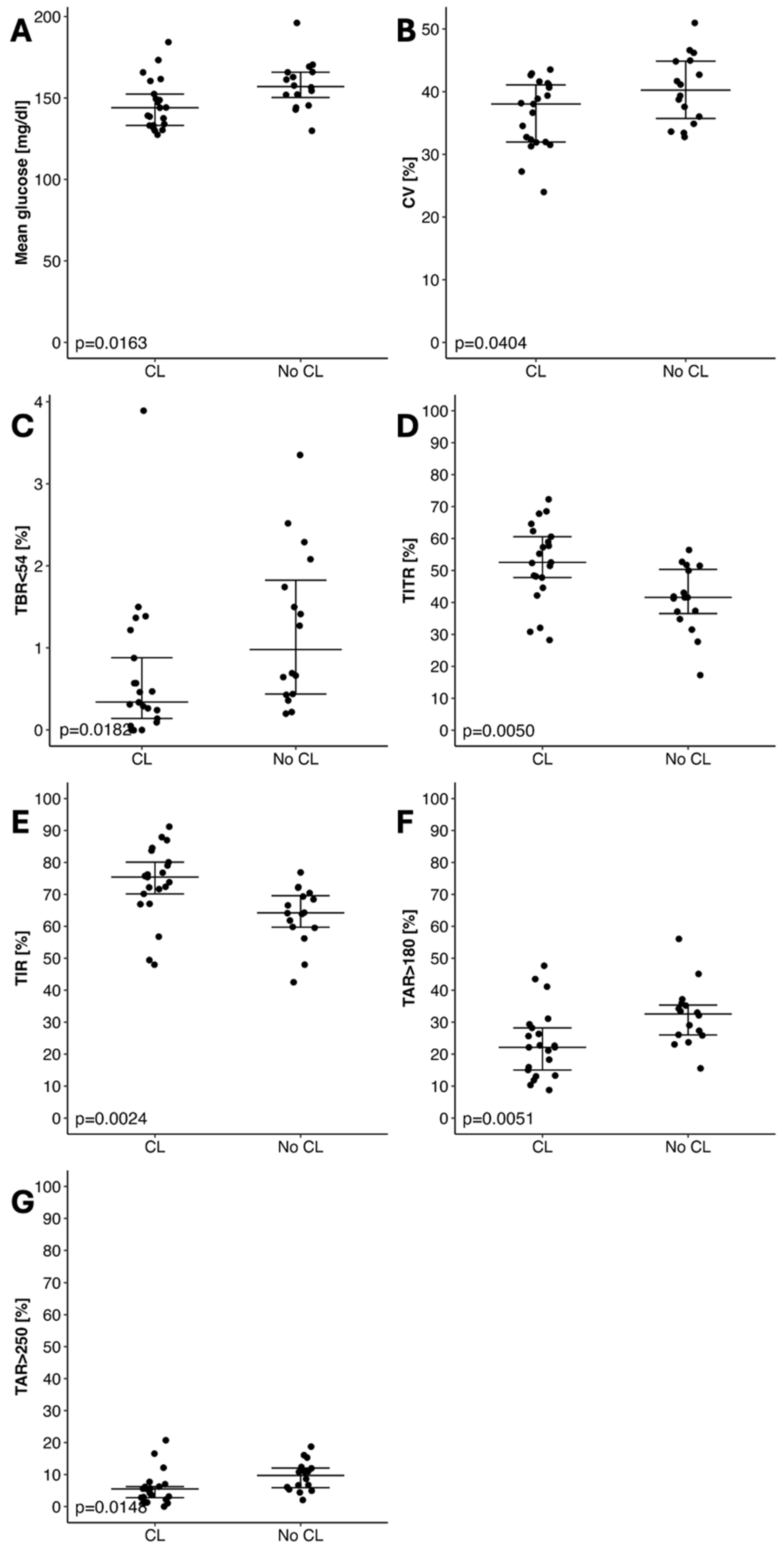 Time Below Target Range ≤ 54 mg/dL [%] | 0.34 (0.14–0.88) | 0.98 (0.44–1.82) | 0.0182 |