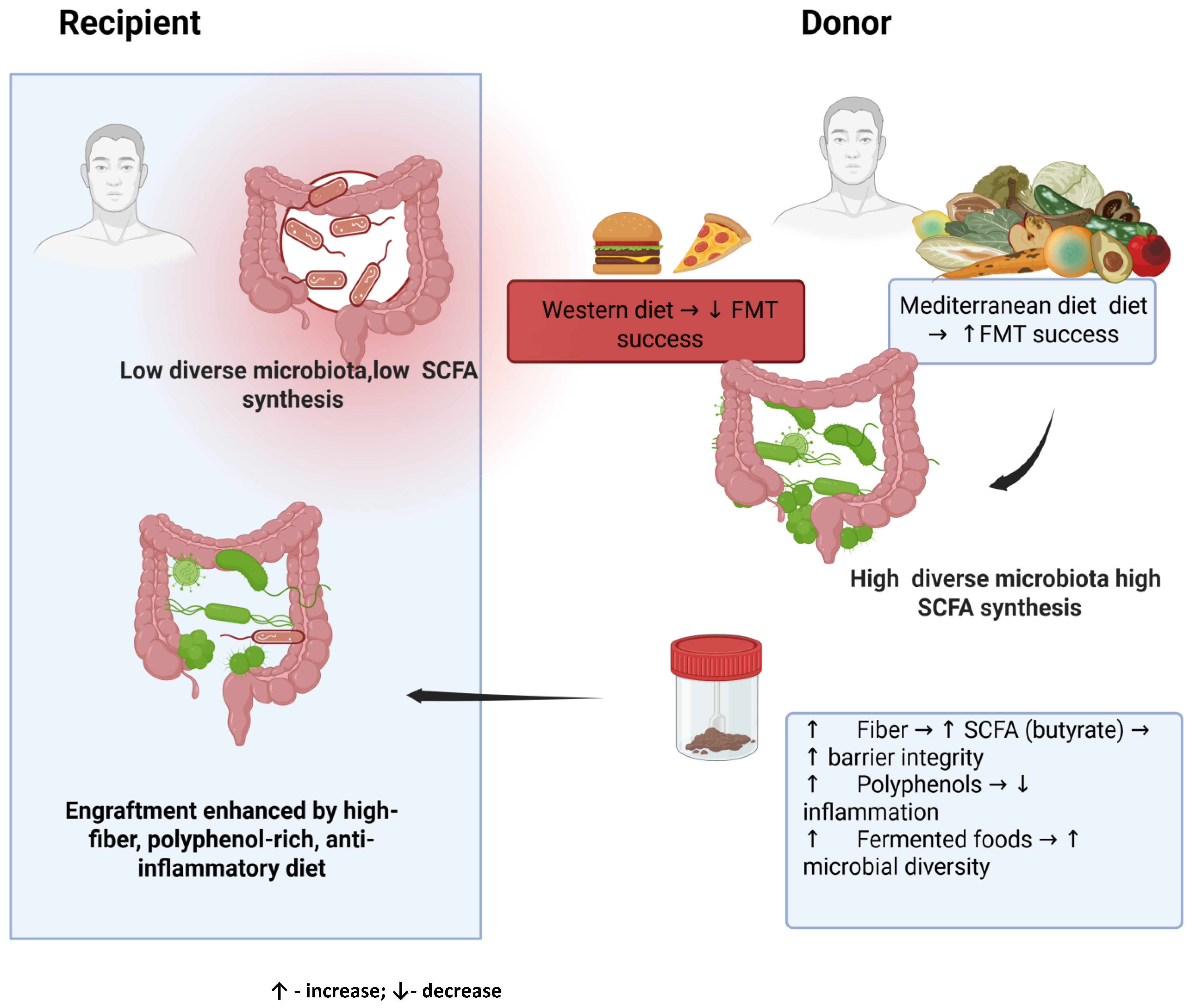 Komorniak N, Gaweł K, Deskur A, Pawlus J, Stachowska E. The Impact of Diet on the Fecal Microbiota Transplantation Success in Patients with Gastrointestinal Diseases—A Literature Review. Nutrients. 2025; 17(20):3314. https://doi.org/10.3390/nu17203314