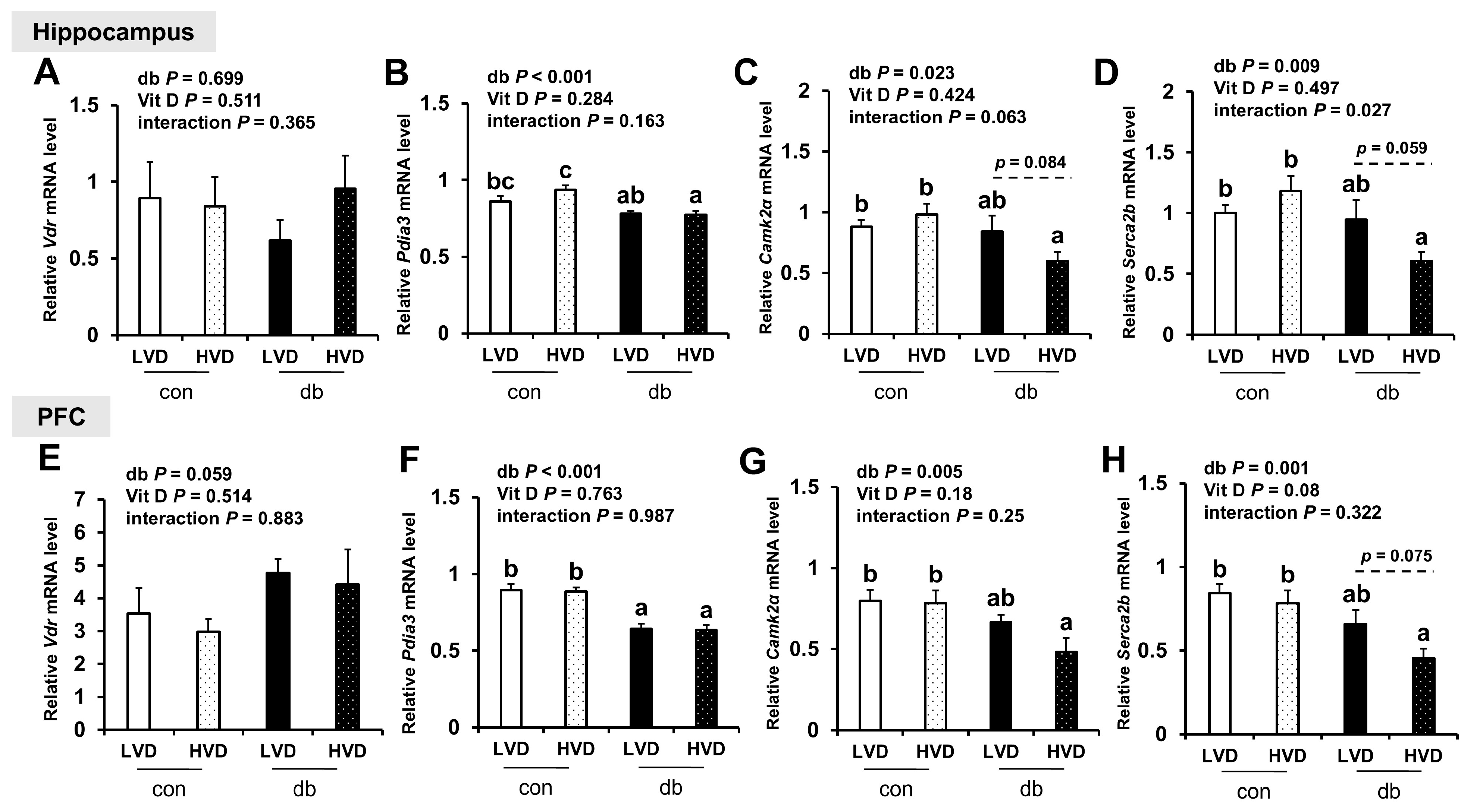 | con_LVD (n = 13) | con_HVD (n = 14) | db_LVD (n = 10) | db_HVD (n = 10) | Diabetes | Vit D Intake | Interaction | |
