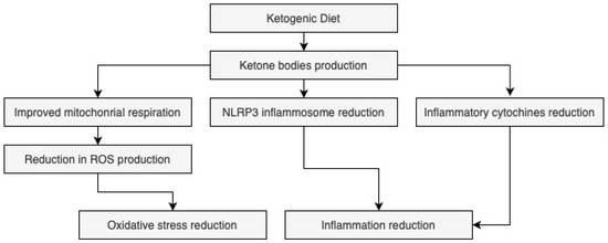 Effects of Ketogenic Diet on neuroinflammation and oxidative stress. Legend. ROS: reactive oxygen species; NLRP3: NOD-like receptor (NLR) family, pyrin domain containing 3.