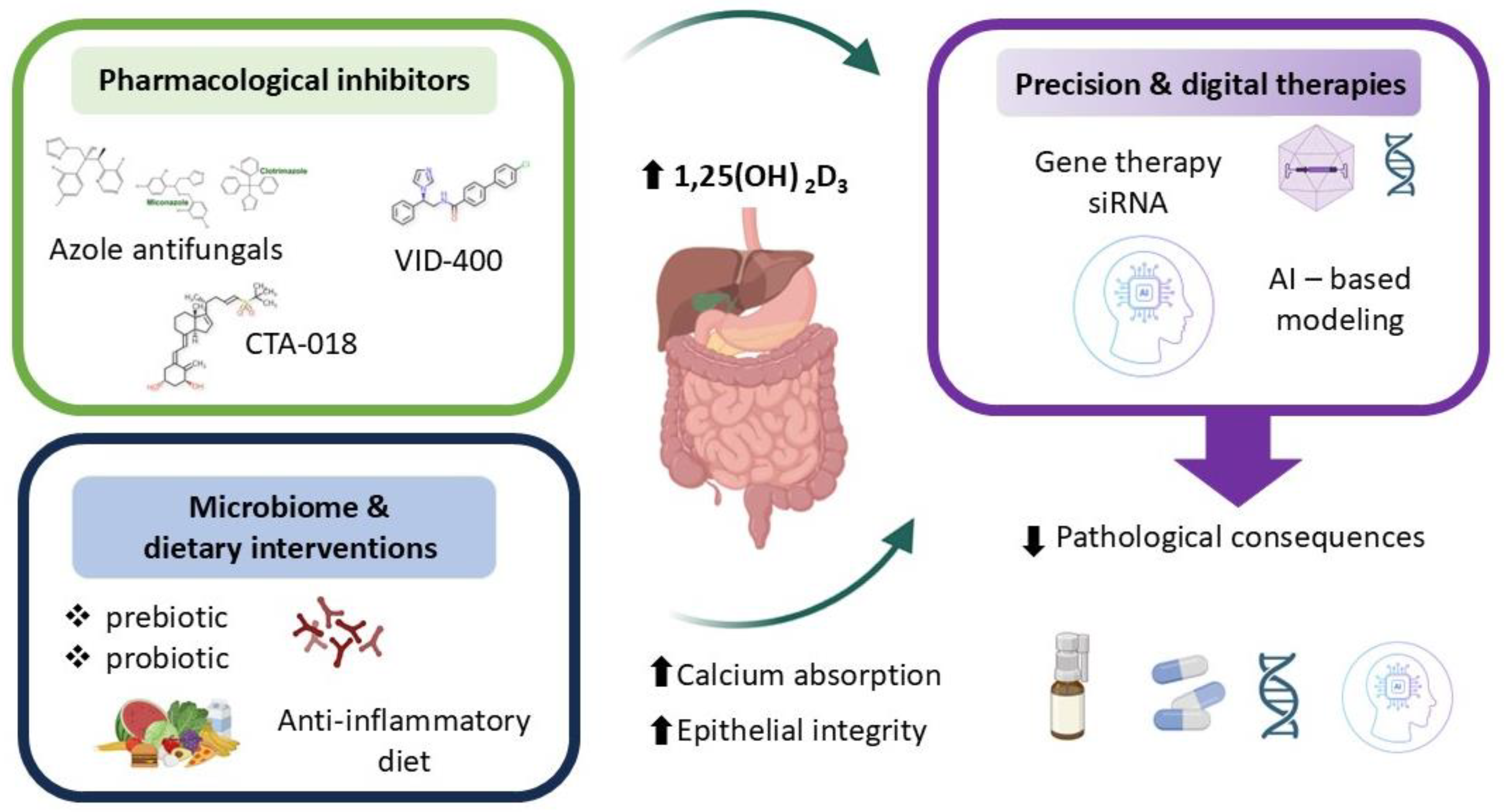 - Lemoine, S.; Molin, A.; Koenig, A.; Bacchetta, J. Clinical evidence for independent regulation of vitamin D by intestinal CYP24A1. J. Clin. Investig. 2025, 135, 8. [Google Scholar] [CrossRef] [PubMed]