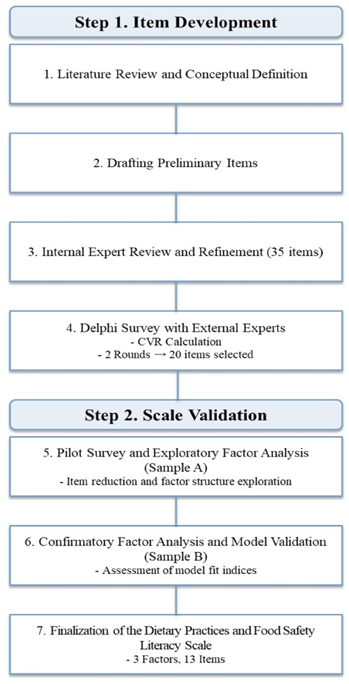 APA StyleLee, Y.-R., Nam, G.-M., Kim, Y.-S., Shin, H.-R., Park, Y.-K., Mun, J.-H., Cho, S.-H., & Lim, H.-S. (2025). Development of the Dietary Practices and Food Safety Literacy Scale for Older Adults. Nutrients, 17(21), 3354. https://doi.org/10.3390/nu17213354