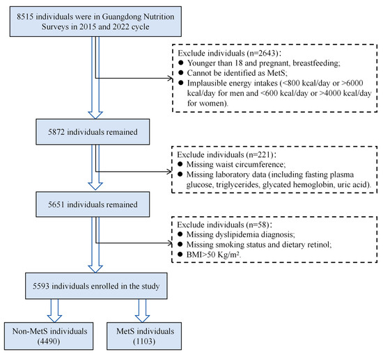 Flowchart of the study participants screening in the study. BMI, body mass index; MetS, metabolic syndrome.