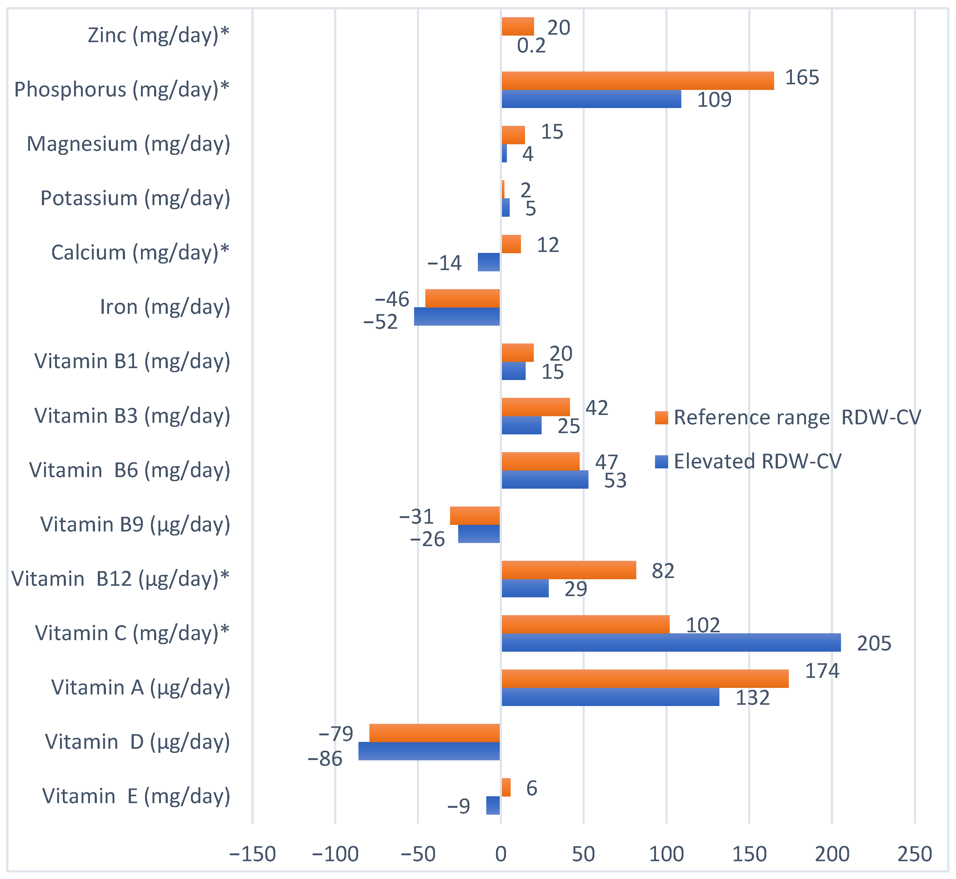 Antosiak-Cyrak K, Demuth A, Czerniak U, Ratajczak J, Bryl E, Kowalski P, Wochna K, Lewandowska M, Domaszewska K. The Impact of Dietary Nutrient Intake on Red Blood Cell Distribution Width-Coefficient of Variation in Pregnant Women: A Cross-Sectional Observational Pilot Study. Nutrients. 2025; 17(21):3396. https://doi.org/10.3390/nu17213396