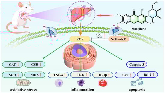- Shi, C.; Li, Y.; You, Z.; Tian, Y.; Zhu, X.; Xu, H.; Yang, M.; Zhang, Y.; Dong, R.; Quan, H.; et al. Mangiferin Ameliorates CCl4-Triggered Acute Liver Injury by Inhibiting Inflammatory Response and Oxidative Stress: Involving the Nrf2-ARE Pathway. J. Inflamm. Res. 2024, 17, 7081–7097. [Google Scholar] [CrossRef]