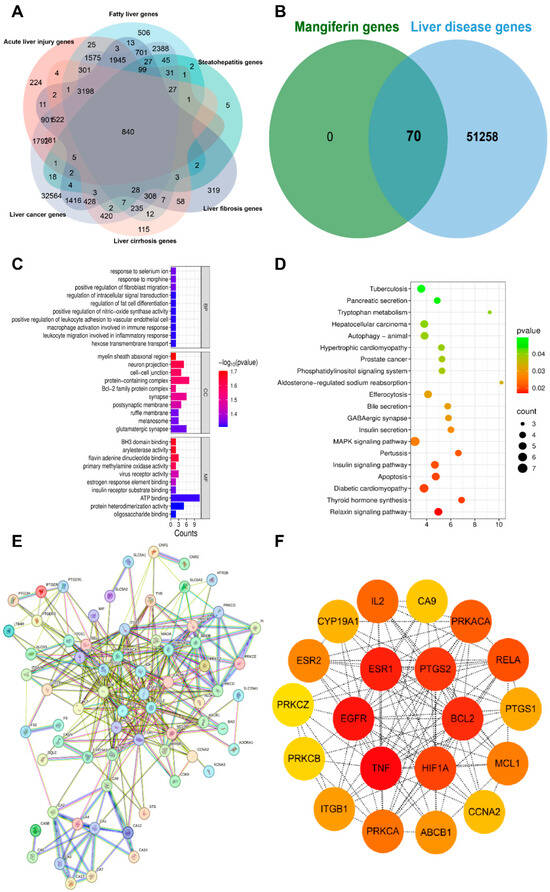 Mangiferin (MF), a bioactive xanthone compound widely found in a variety of fruits, vegetables, and herbs, has attracted growing interest due to its remarkable antioxidative effects and therapeutic versatility. The core pharmacological feature of MF lies in its potent broad-spectrum antioxidant activity. By precisely regulating tissue-specific antioxidant signaling pathways, it provides comprehensive protection against damage to the kidneys, cardiovascular system, nervous system, skeletal system, reproductive metabolic system, and diabetes-related organs. For the kidneys, it offers antioxidant protection against diabetic nephropathy, renal ischemia–reperfusion injury, and hypertensive nephropathy [1,2,3]. In the cardiovascular system, it counteracts myocardial apoptosis [4]. In the nervous system, it ameliorates depression, neuronal injury, and Parkinson’s-related damage [5,6,7]. It also protects bones, alleviates oxidative damage in polycystic ovary syndrome [8,9], and supports protection of diabetes-related organs [10]. This multidimensional mechanism has been thoroughly validated. This compound plays a critical role in counteracting oxidative stress, which is a key contributor to the onset and progression of numerous diseases, including liver disorders. The unique structure of MF, characterized by its glucosyl-modified xanthone skeleton (C2-β-D-glucoside), provides the molecular basis for its ability to modulate multiple cellular pathways, offering a multi-target approach to therapeutic intervention. Recent studies have demonstrated that MF can alleviate lipotoxicity, restore redox balance, inhibit pro-fibrotic signaling, and block tumor cell cycles, positioning it as a promising pleiotropic hepatoprotective agent in the context of liver disease [11,12,13,14].