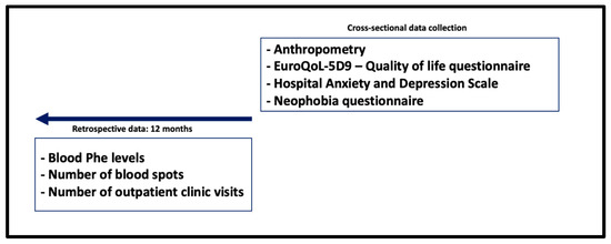 The aim of this study was to examine blood Phe control, nutritional, physical and mental health outcomes of adolescents with PKU. Management practices were compared with the European PKU guidelines [29] as a standard of care. The study design is presented in Figure 1.