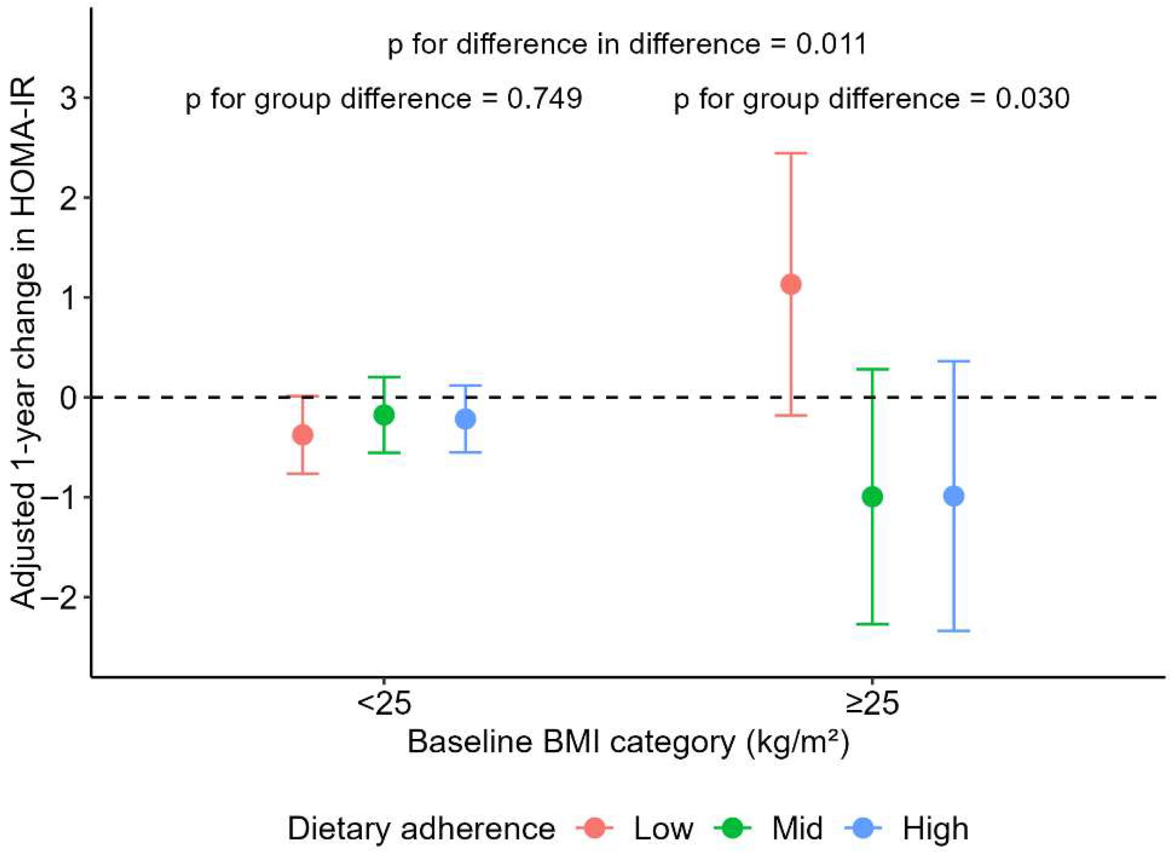 | HOMA-IR | −0.21 (−0.58, 0.17) | 0.44 (−0.22, 1.11) | −0.45 (−1.10, 0.19) | −0.53 (−1.15, 0.09) | 0.058 | 0.036 | 0.047 |