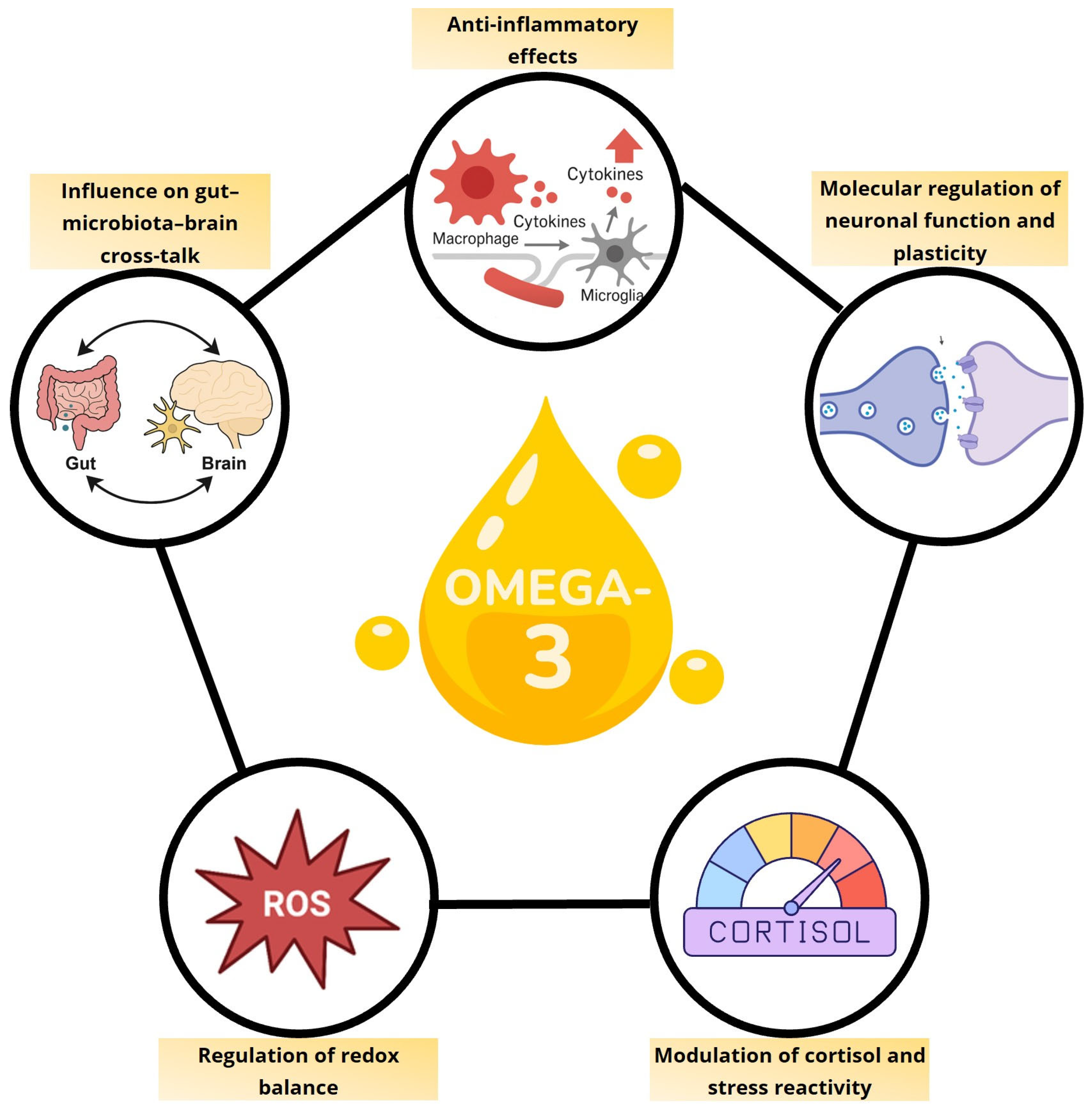 De Cillis F, Begni V, Genini P, Leo D, Riva MA, Cattaneo A. Restoring Balance: The Role of Omega-3 Polyunsaturated Fatty Acids on the Gut–Brain Axis and Other Interconnected Biological Pathways to Improve Depression. Nutrients. 2025; 17(21):3426. https://doi.org/10.3390/nu17213426