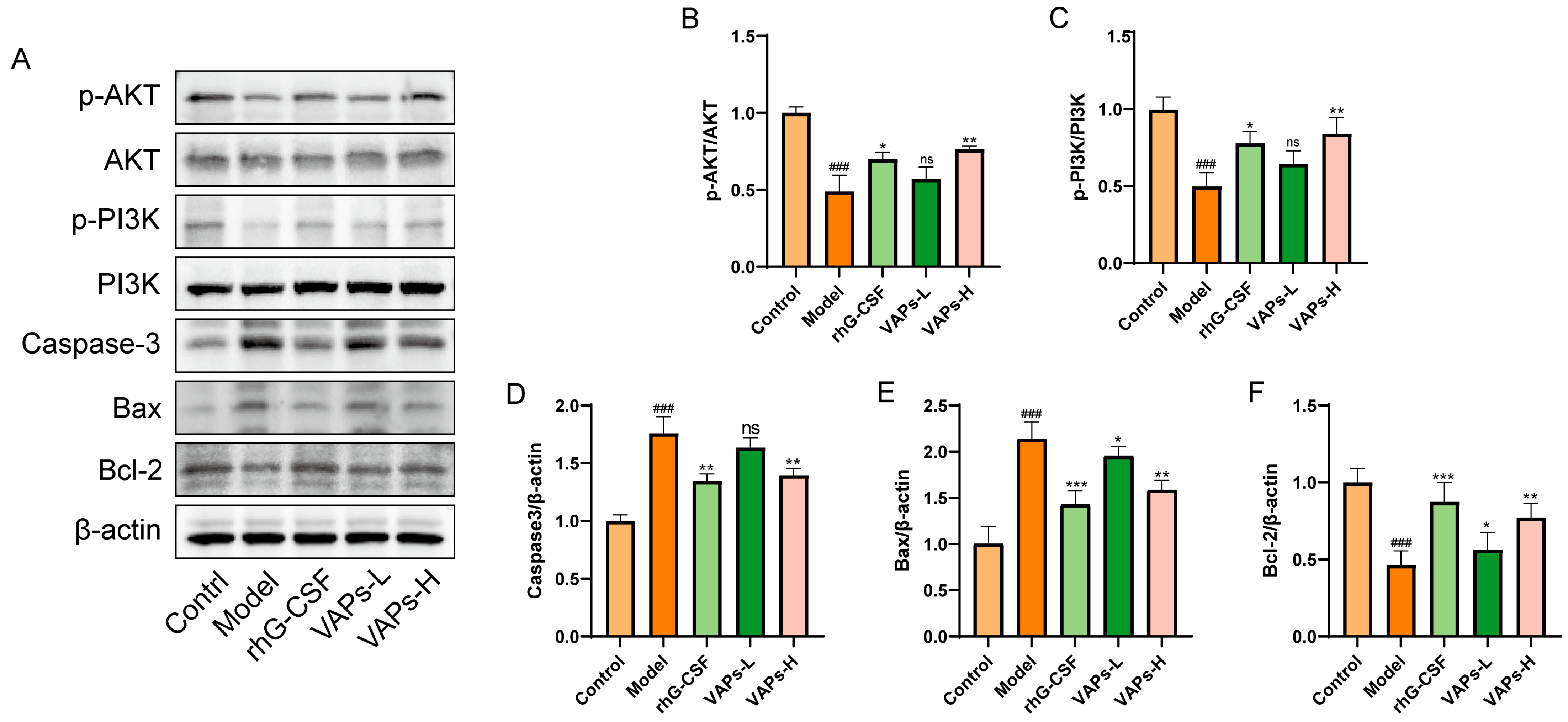 3.13. VAPs’ Effects on the PI3K/AKT Pathway and Notch1 in Myelosuppression Mice