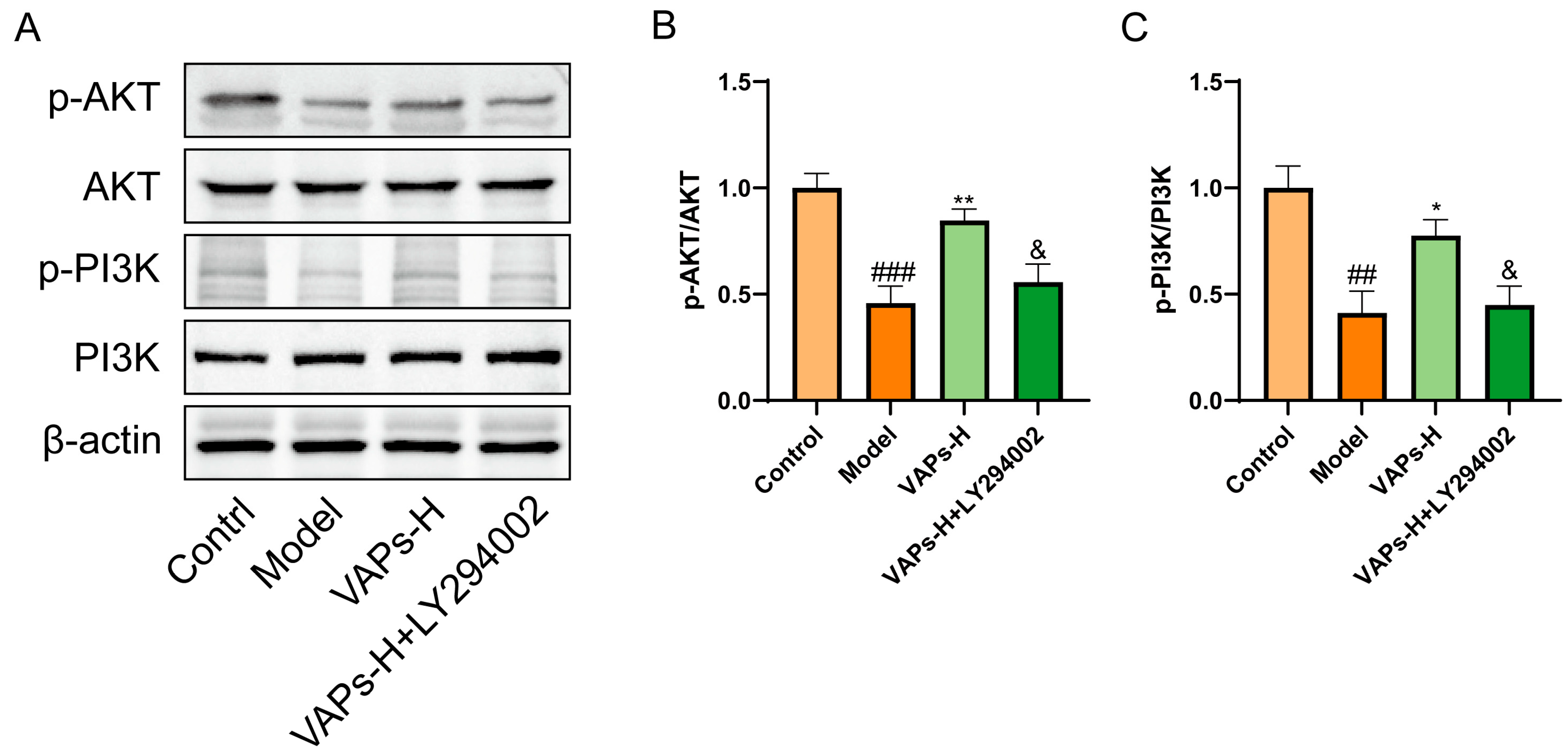 3.14. The PI3K Inhibitor LY294002 Verified the Effect of VAPs on the Proteins of the PI3K/AKT Pathway