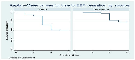 The Kaplan—Meier curves for time to EBF cessation intervention and controls.