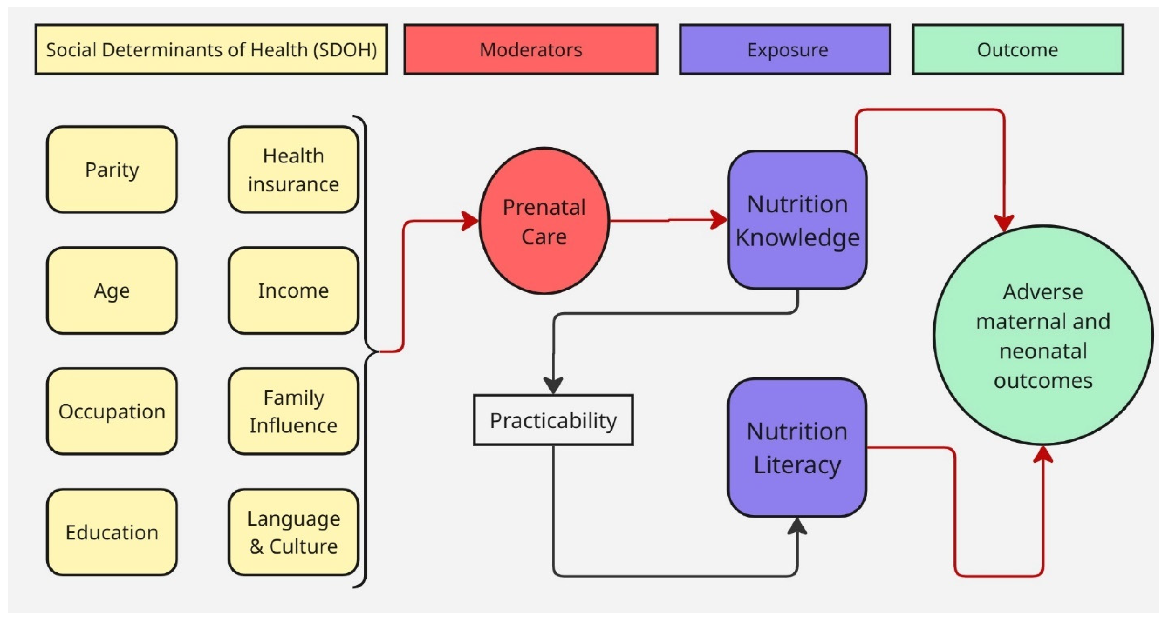 | Income Level but Not Nutrition Knowledge Is Associated with Dietary Diversity of Rural Pregnant Women from Northern Ghana [16] | 2020–2021 | To evaluate the nutrition knowledge, attitudes, and dietary diversity of pregnant women and to investigate the sociodemographic factors that determine their dietary diversity | Cross-Sectional Survey | 130 | Nutrition knowledge | Ghana | The study found that pregnant women’s nutrition knowledge was limited (mean score: 2.65 out of 5) but it is not a significant determinant of dietary diversity. |