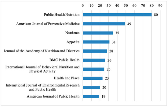 Top 10 journals publishing the most articles on nutrition research related to restaurants (n = 824).