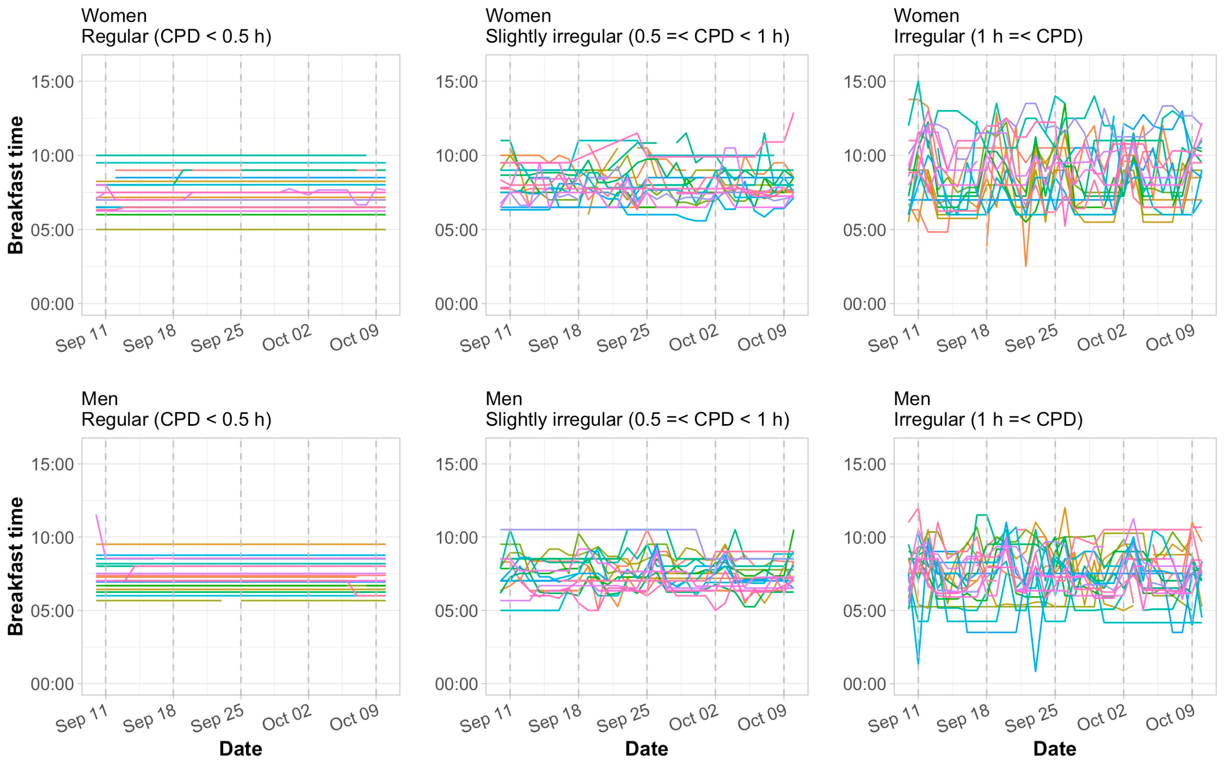 3.2.1. Line Plots of Individual Breakfast Timing Trends