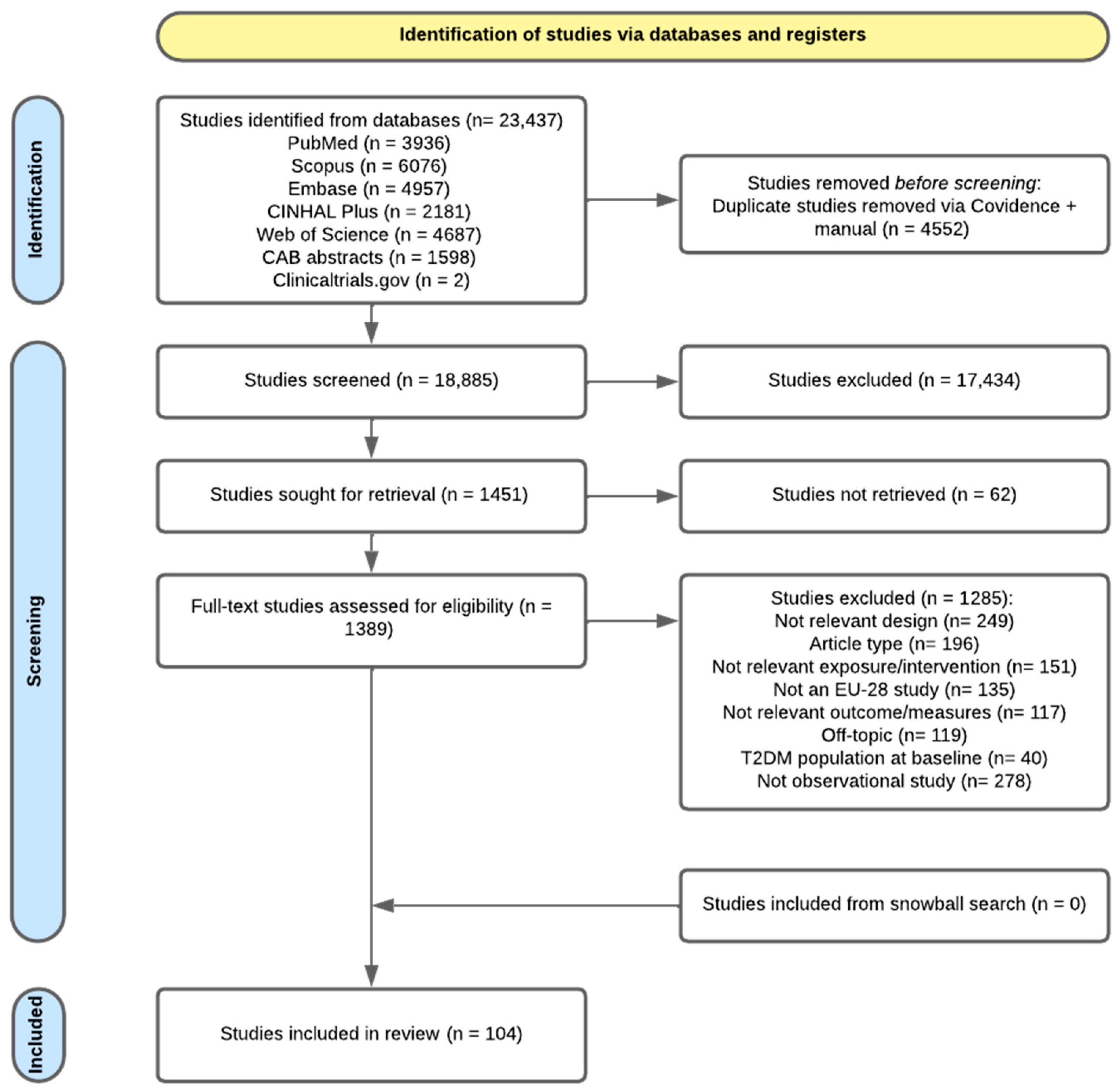 - Population: Adults (≥18 years) without diagnosed T2DM, may include prediabetes at baseline, residing in the EU-28.