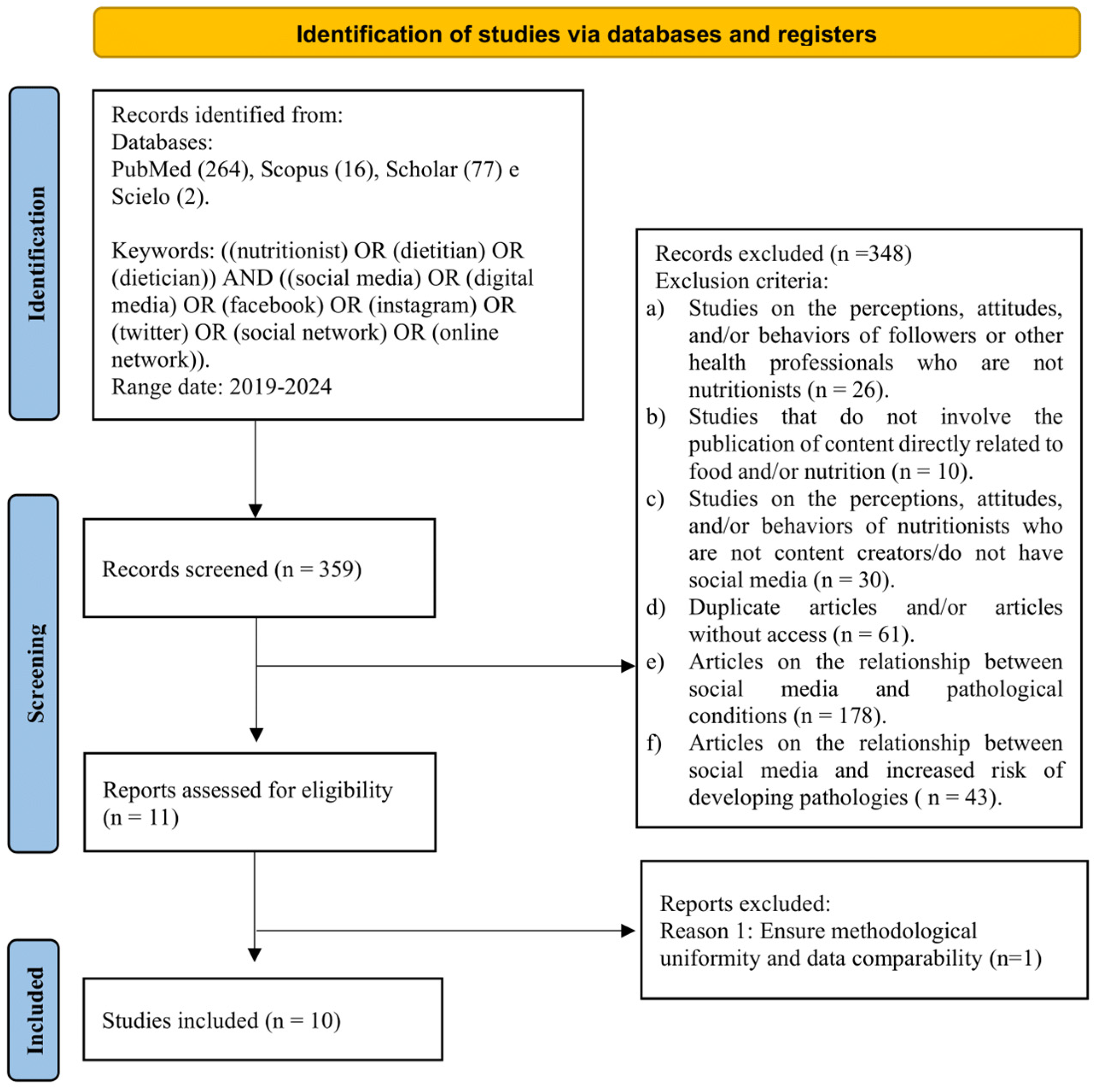 - Studies that did not involve the publication of content directly related to food and/or nutrition.