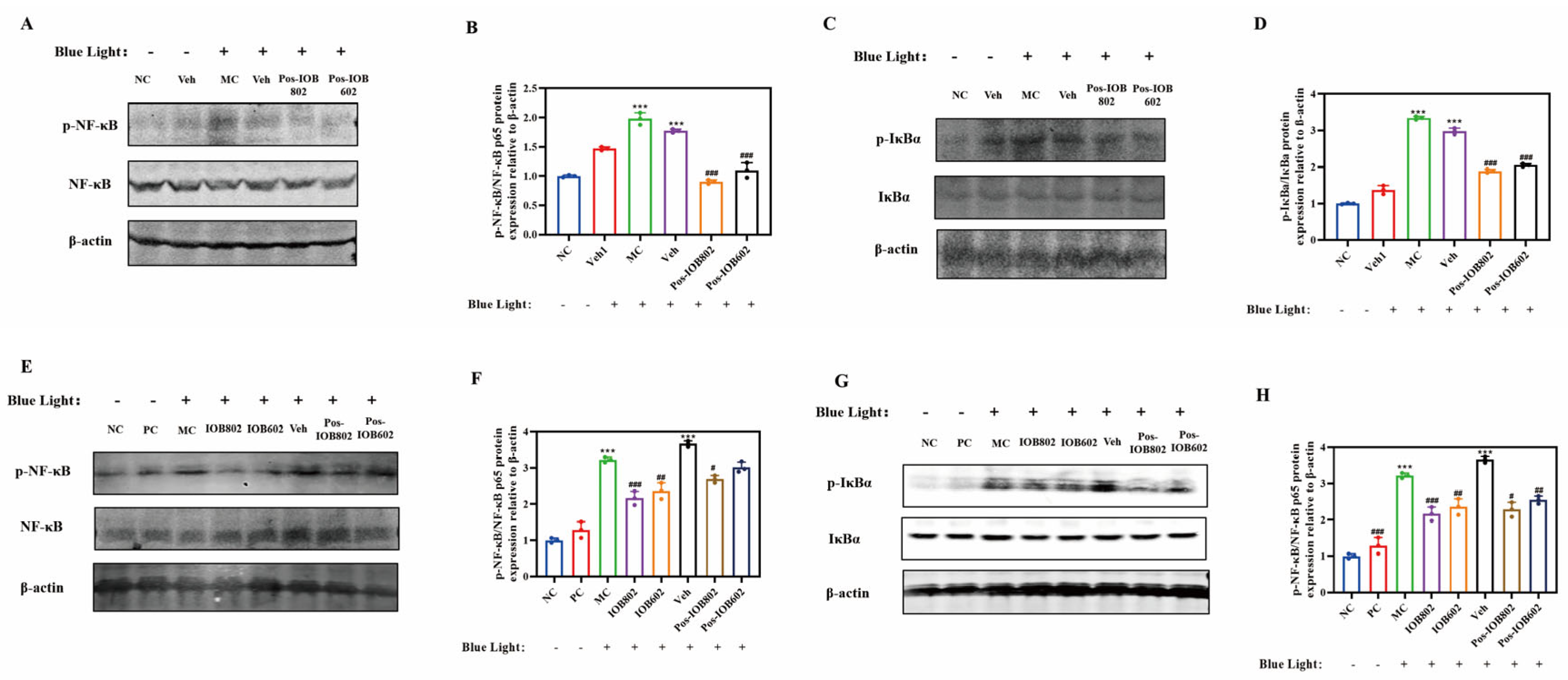 3.4. Modulation of NF-κB Signaling Pathway by IOB802 and IOB602
