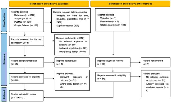 - Page, M.J.; McKenzie, J.E.; Bossuyt, P.M.; Boutron, I.; Hoffmann, T.C.; Mulrow, C.D.; Shamseer, L.; Tetzlaff, J.M.; Akl, E.A.; Brennan, S.E.; et al. The PRISMA 2020 Statement: An Updated Guideline for Reporting Systematic Reviews. BMJ 2021, 372, 71. [Google Scholar] [CrossRef]