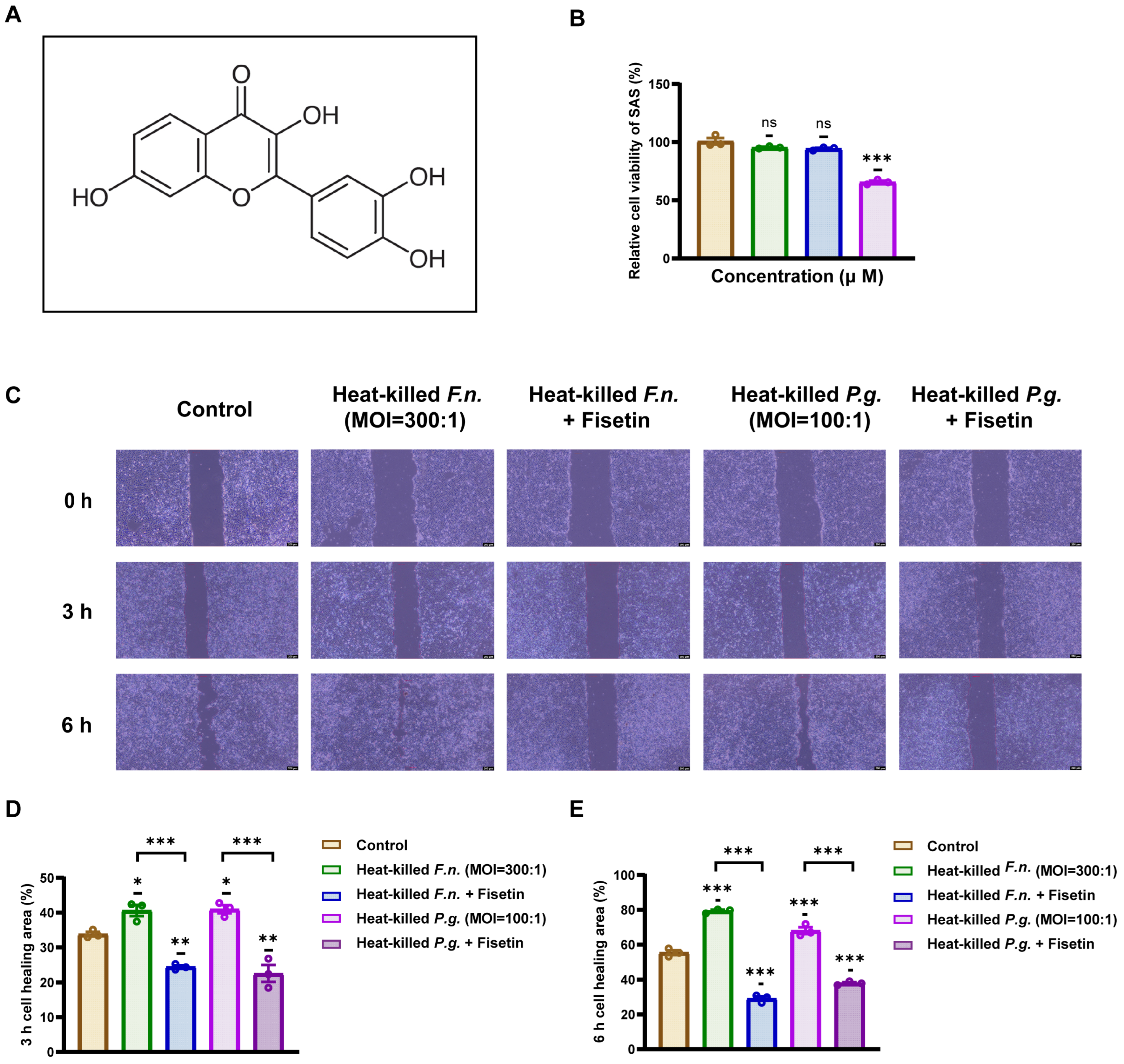 3.2. Fisetin Inhibits OSCC Cell Migration Induced by Heat-Killed Periodontal Pathogens