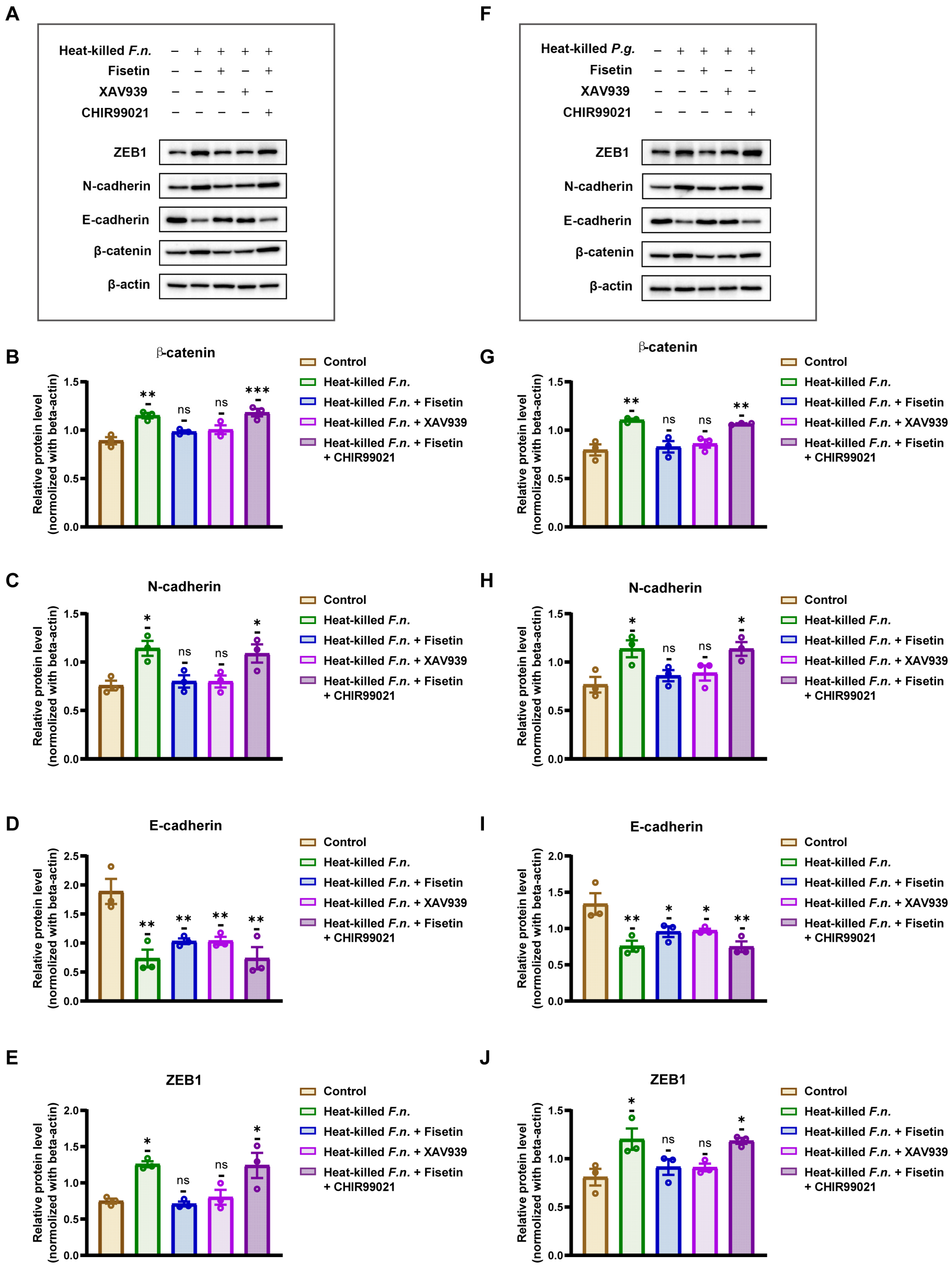 3.4. Fisetin Inhibits Periodontal Pathogen-Induced EMT Processes in OSCC via the Wnt/β-Catenin Pathway