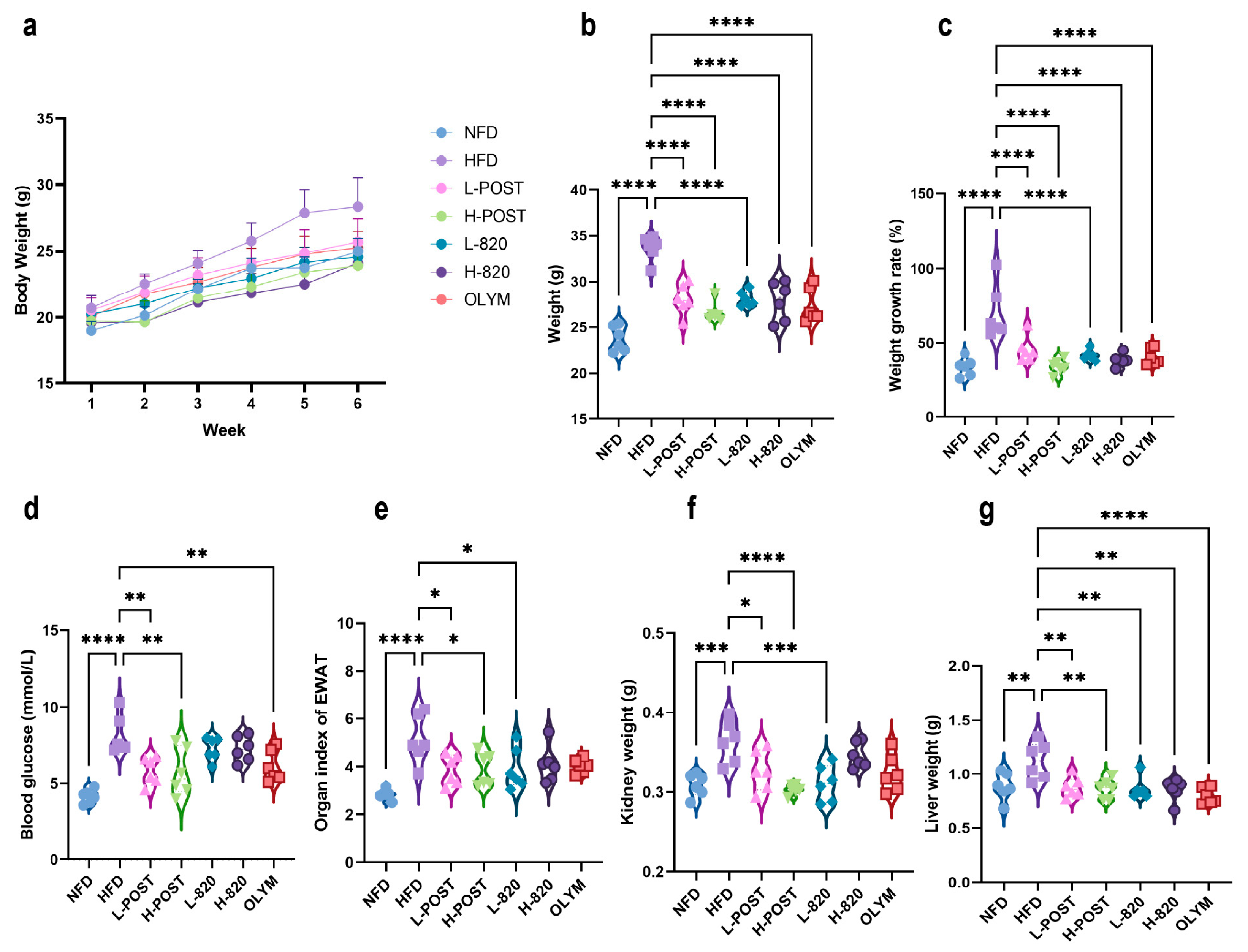 Feng, X.; Li, H.; Tian, J.; Han, X.; Liang, W.; Zhong, F.; Luo, X. Postbiotics from Lacticaseibacillus rhamnosus IOB820 Combat Obesity in HFD Mice by Modulating Gut Microbiota and Enhancing SCFA Production. Nutrients 2025, 17, 3525. https://doi.org/10.3390/nu17223525