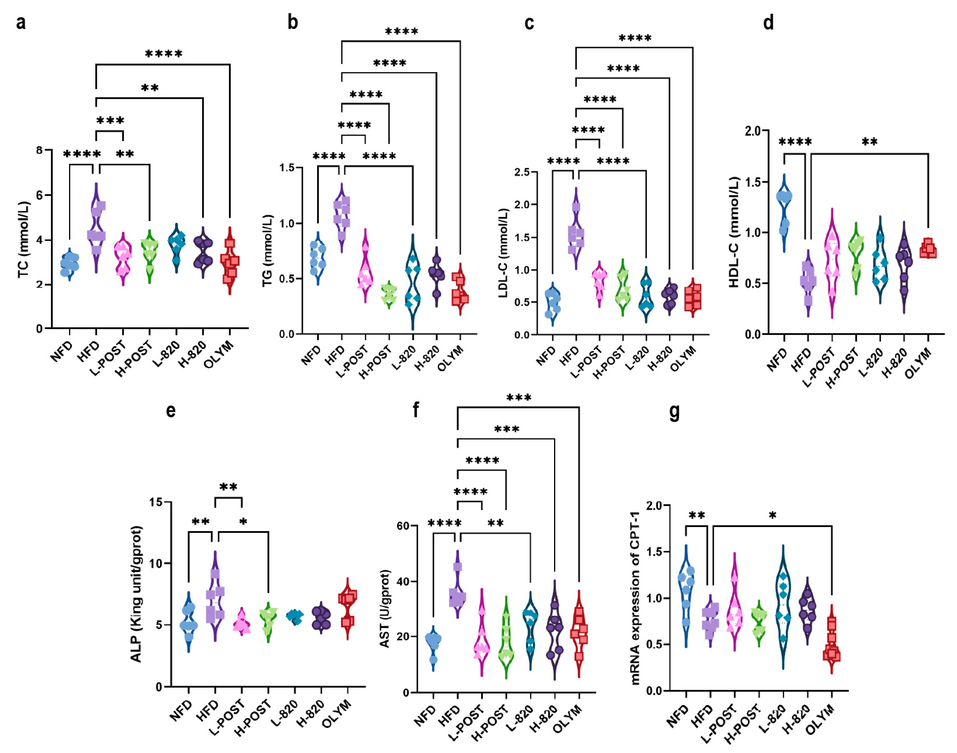 - Chen, H.; Zhao, H.; Qi, X.; Sun, Y.; Ma, Y.; Li, Q. Lactobacillus plantarum HF02 alleviates lipid accumulation and intestinal microbiota dysbiosis in high-fat diet-induced obese mice. J. Sci. Food Agric. 2023, 103, 4625–4637. [Google Scholar] [CrossRef] [PubMed]