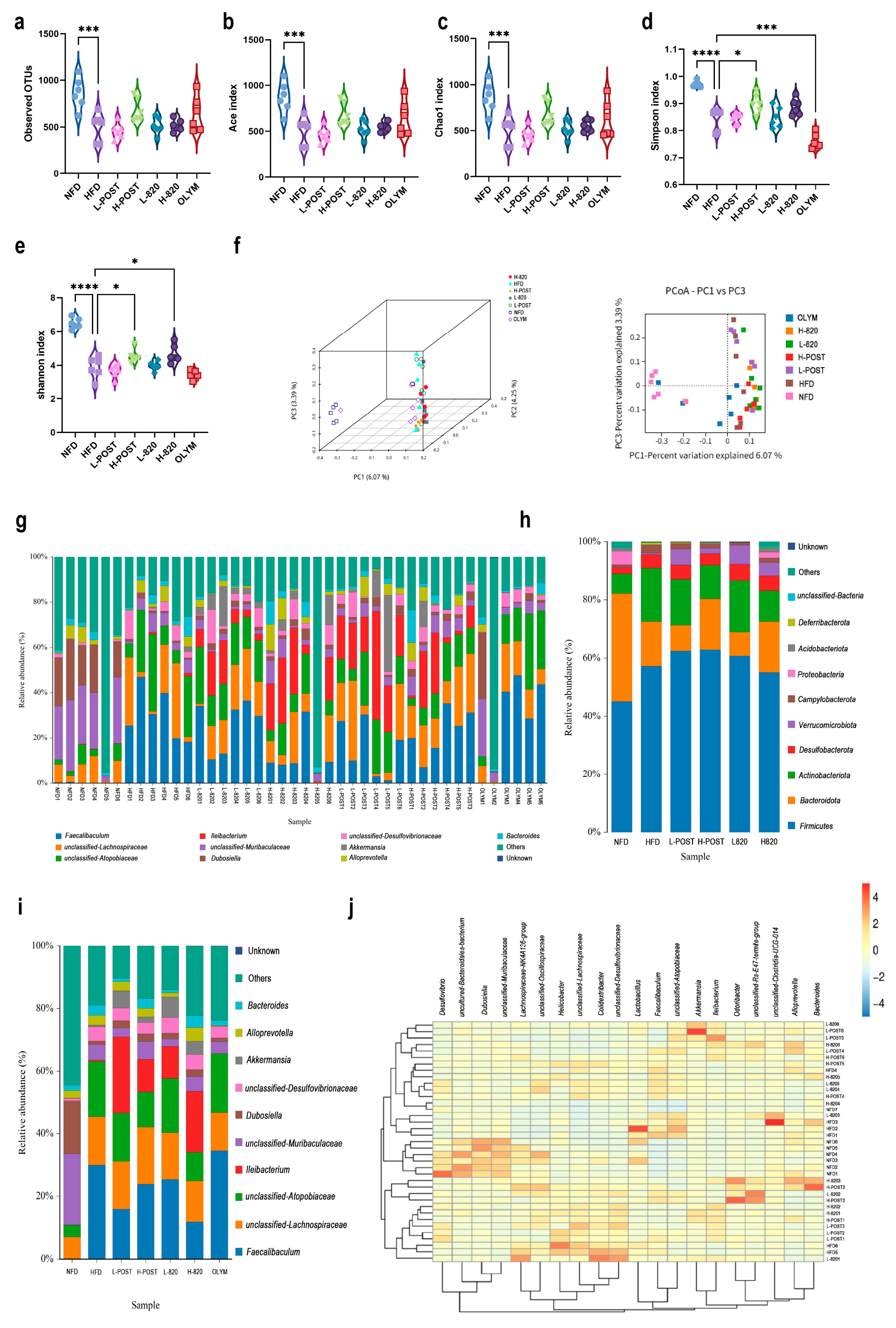 Chicago/Turabian StyleFeng, Xiaomin, Hanlu Li, Jianxia Tian, Xuemei Han, Wu Liang, Feiliang Zhong, and Xuegang Luo. 2025. "Postbiotics from Lacticaseibacillus rhamnosus IOB820 Combat Obesity in HFD Mice by Modulating Gut Microbiota and Enhancing SCFA Production" Nutrients 17, no. 22: 3525. https://doi.org/10.3390/nu17223525