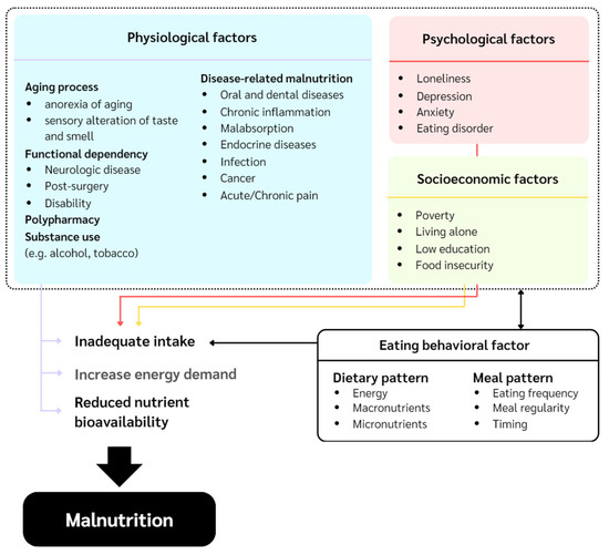 Thailand became an aged society in 2022, with adults aged 60 years and older comprising over 20% of the population [1]. This demographic shift poses major public health challenges, particularly malnutrition, which contributes to frailty, functional decline, reduced quality of life, and increased healthcare costs [2]. National data show high rates of malnutrition and malnutrition risk among older adults, especially in Northern Thailand [3]. This condition arises from multiple causes (e.g., physiological, psychological, and socioeconomic), which collectively reduce dietary intake and promote frailty [2,3,4].