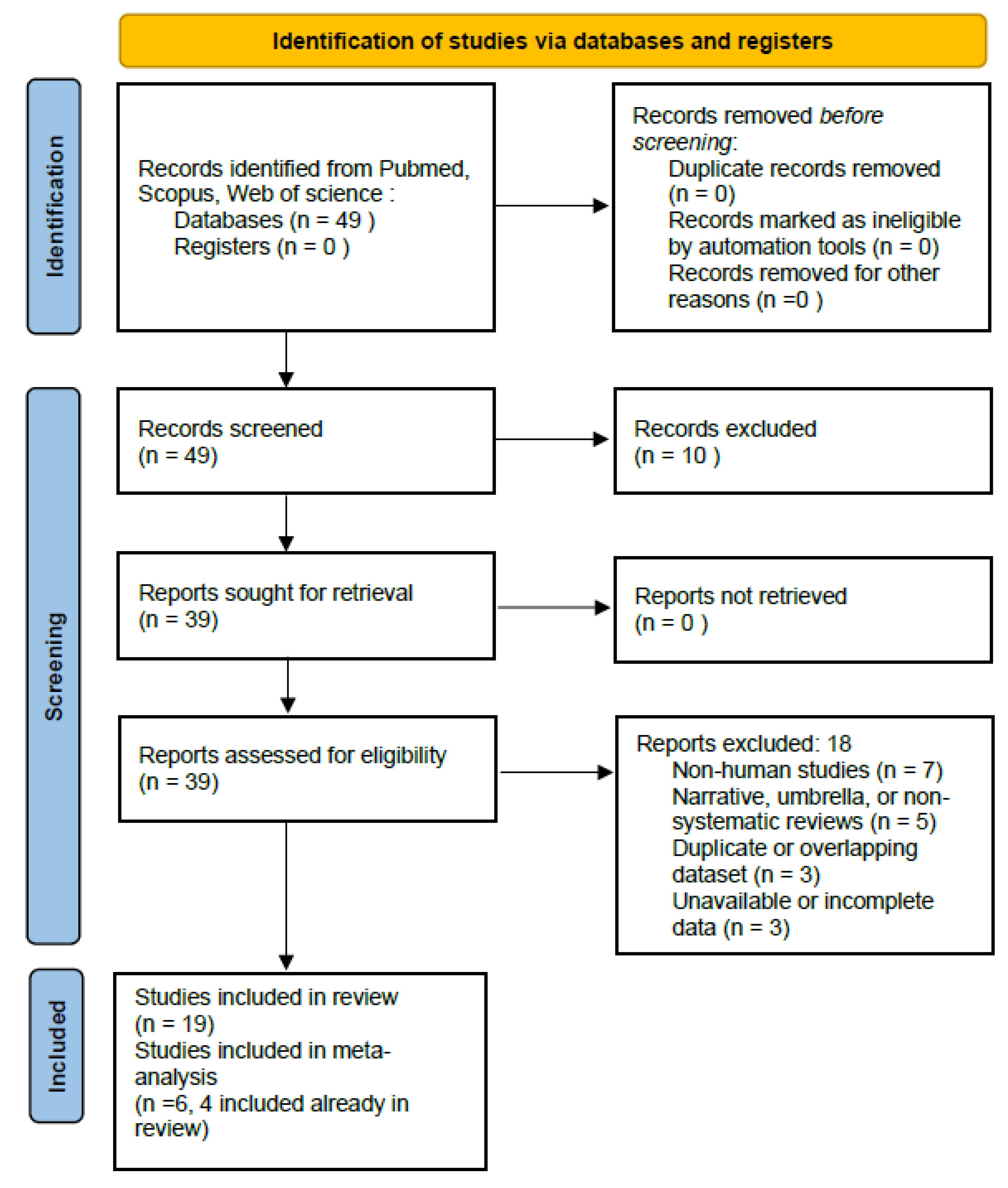 - Page, M.J.; McKenzie, J.E.; Bossuyt, P.M.; Boutron, I.; Hoffmann, T.C.; Mulrow, C.D.; Shamseer, L.; Tetzlaff, J.M.; Akl, E.A.; Brennan, S.E.; et al. The PRISMA 2020 statement: An updated guideline for reporting systematic reviews. BMJ 2021, 372, n71. [Google Scholar] [CrossRef] [PubMed] [PubMed Central]