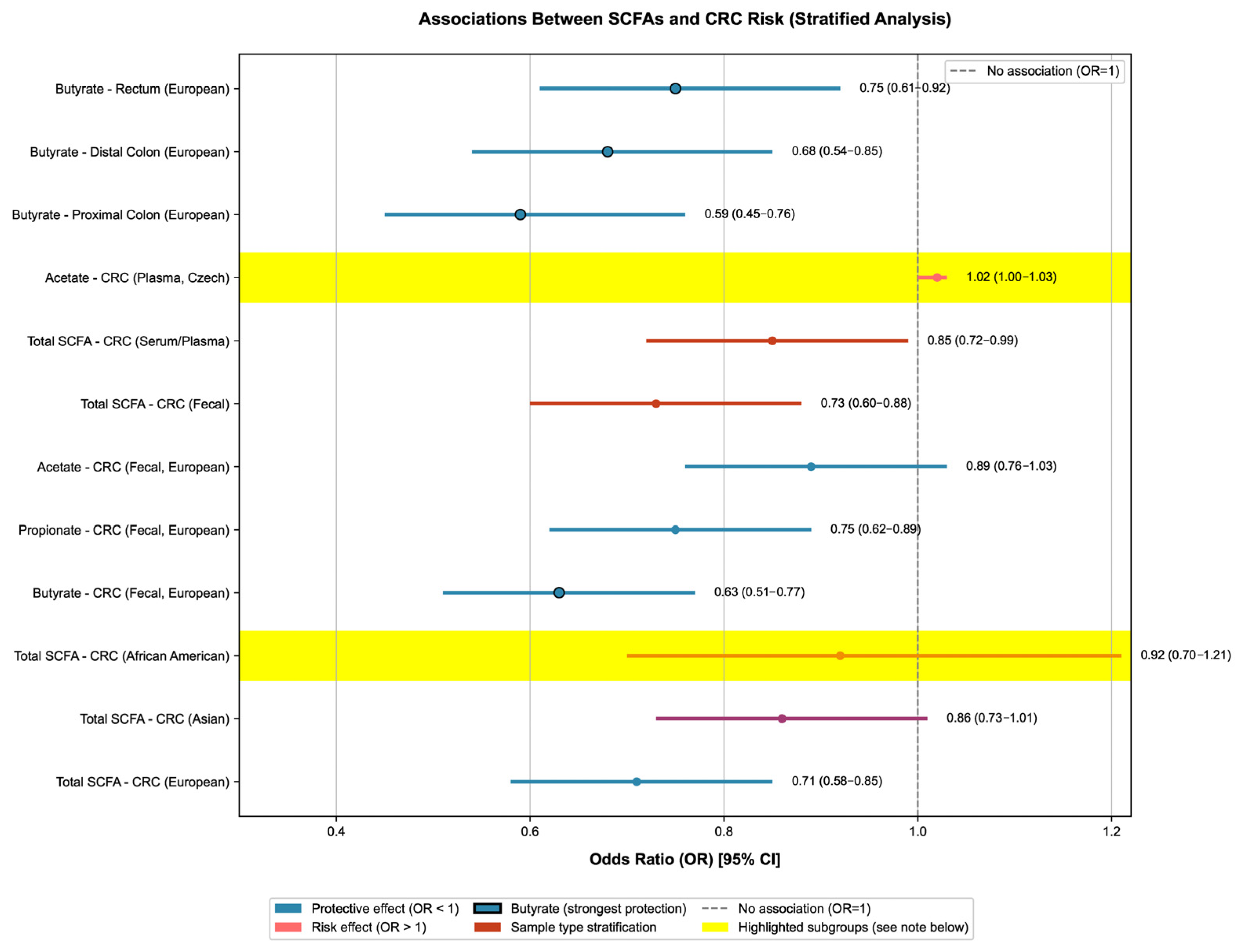 Short-Chain Fatty Acids and Colorectal Cancer: A Systematic Review and Integrative Bayesian Meta-Analysis of Microbiome–Metabolome Interactions and Intervention Efficacy