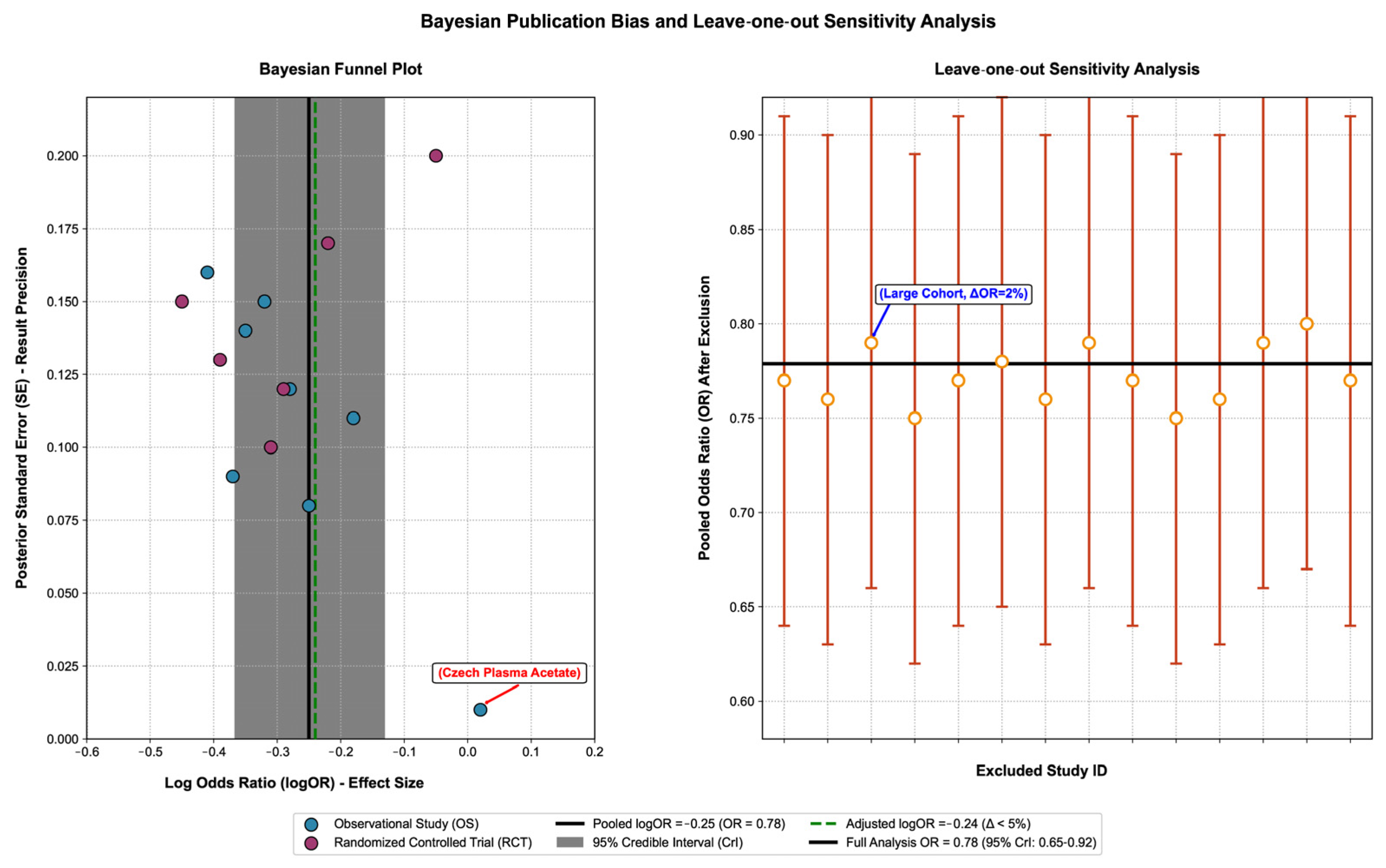 APA StyleHe, Y., Peng, K., Tan, J., Hao, Y., Zhang, S., Gao, C., & Li, L. (2025). Short-Chain Fatty Acids and Colorectal Cancer: A Systematic Review and Integrative Bayesian Meta-Analysis of Microbiome–Metabolome Interactions and Intervention Efficacy. Nutrients, 17(22), 3552. https://doi.org/10.3390/nu17223552