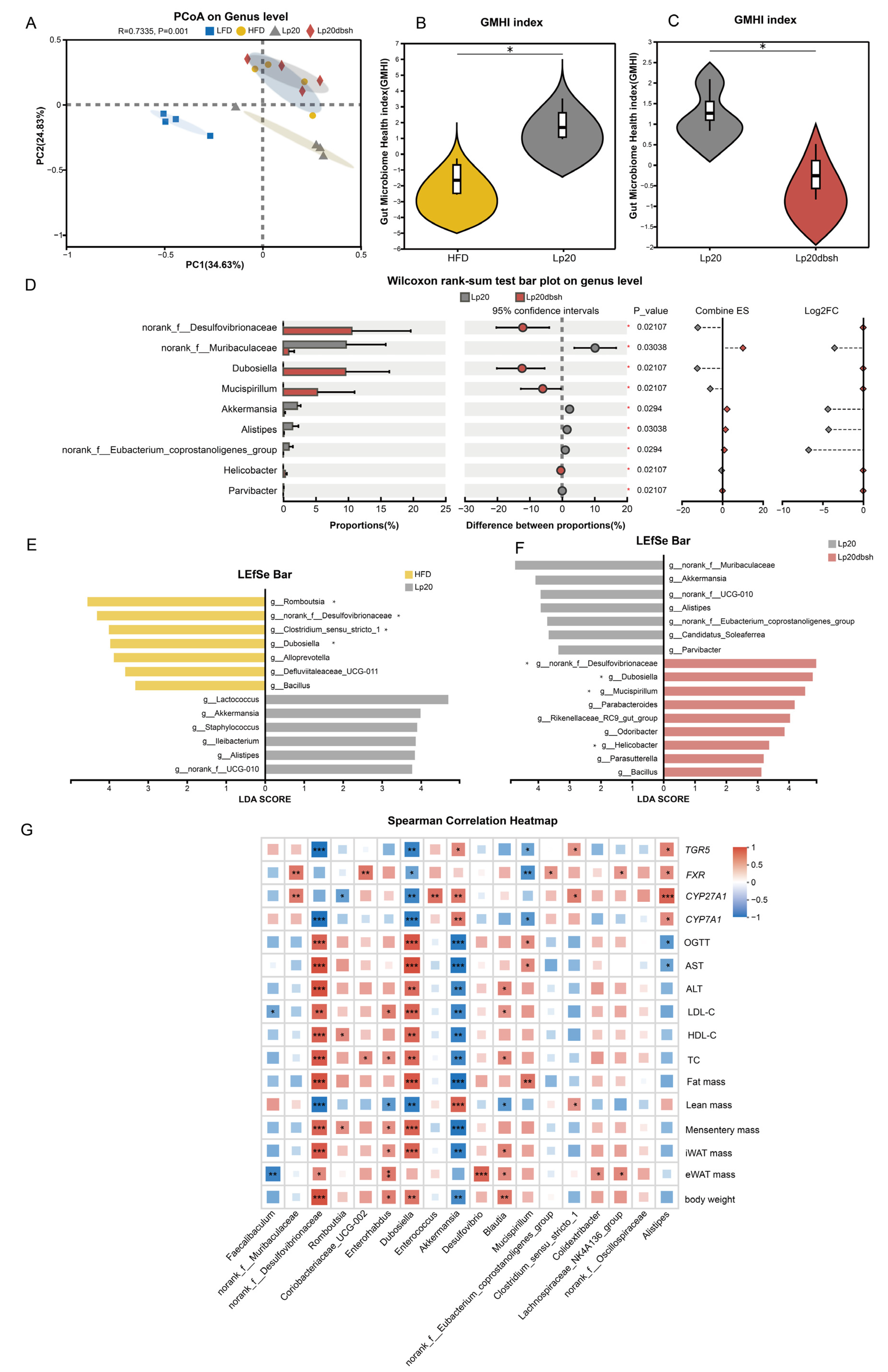 Chicago/Turabian StyleBai, Xiaoyue, Fangzhou Lu, Yizhi Jing, Hui Wang, Haidong Qian, Ming Zhang, Zhengyuan Zhai, and Yanling Hao. 2025. "Lactiplantibacillus plantarum Lp20 Alleviates High Fat Diet-Induced Obesity in Mice via Its Bile Salt Hydrolase Activity" Nutrients 17, no. 22: 3555. https://doi.org/10.3390/nu17223555