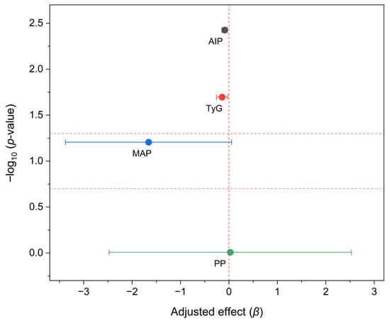 where TG and HDL-c were expressed in mmol/L for AIP, and TG and glucose in mg/dL for the TyG calculation [,,]. Secondary outcomes included changes in TC, LDL-c, VLDL-c, HDL-c, TG, MAP, and PP.