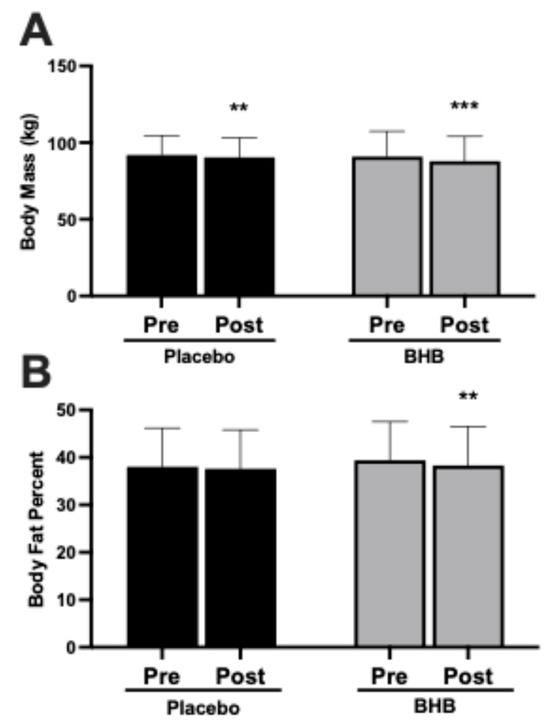 | BHB | 24 | 31.7 ± 2.8 | 30.7 ± 2.8 | −1.07 ± 0.90 | <0.001 | |