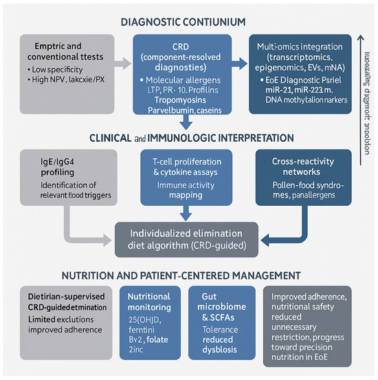 Wawrzeńczyk, A.; Napiórkowska-Baran, K.; Szota, M.; Treichel, P.; Durślewicz, J.; Bartuzi, Z. Dietary Management of Eosinophilic Esophagitis in the Era of Molecular Diagnostics: The Role and Limitations of Component-Resolved Diagnostics—A Narrative Review. Nutrients 2025, 17, 3588. https://doi.org/10.3390/nu17223588
