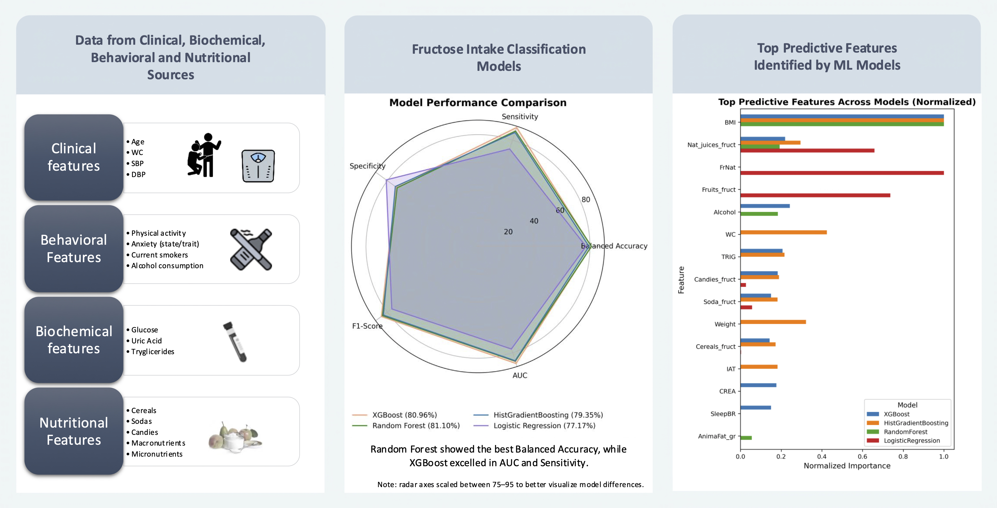 APA StyleGutiérrez-Esparza, G., Martínez-García, M., González Salazar, M. d. C., Amezcua-Guerra, L. M., Brianza-Padilla, M., Ramírez-delReal, T., & Hernández-Lemus, E. (2025). Identifying Key Features Associated with Excessive Fructose Intake: A Machine Learning Analysis of a Mexican Cohort. Nutrients, 17(22), 3623. https://doi.org/10.3390/nu17223623