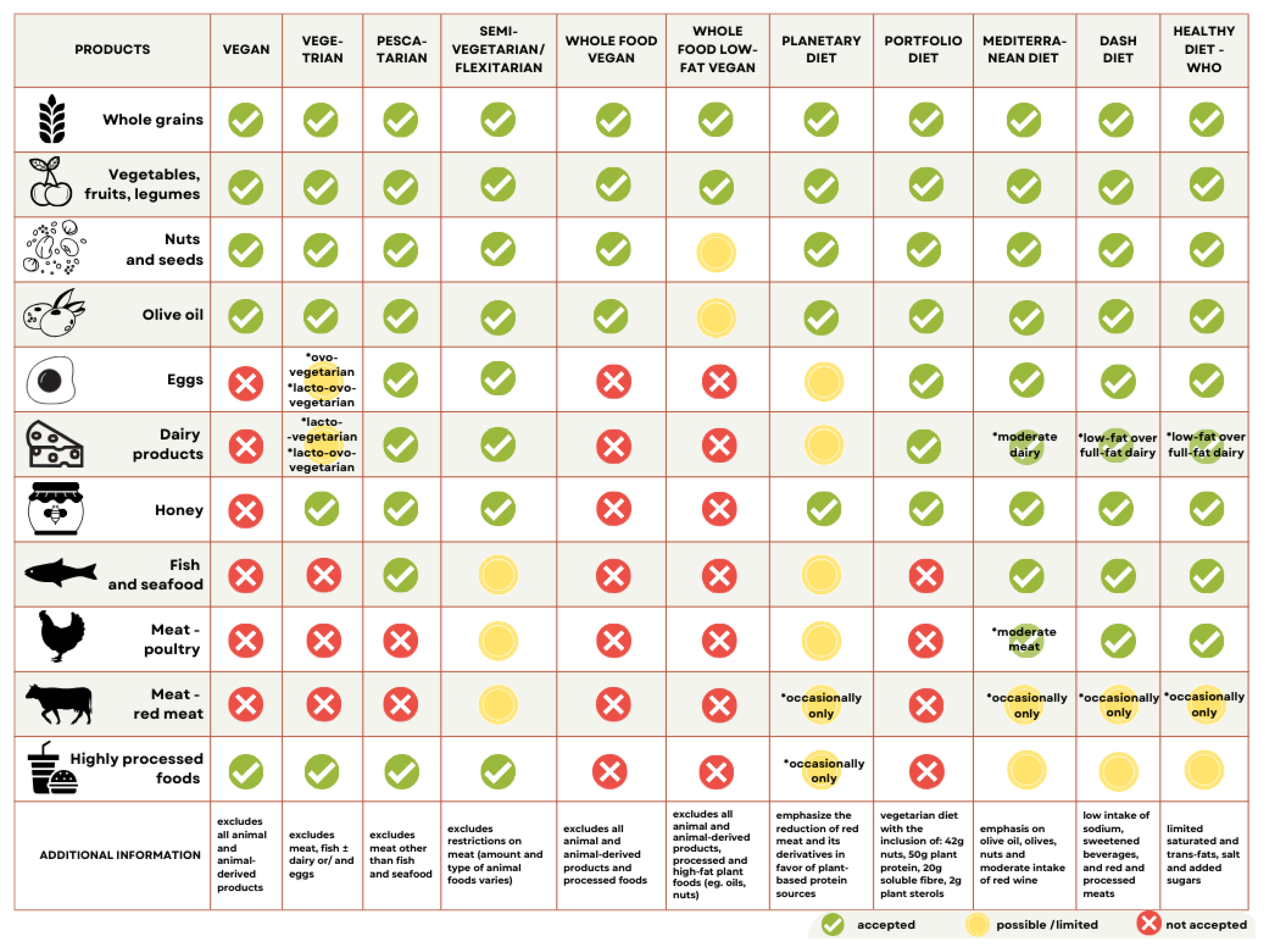 - Vegan diet (VEGAN): excludes all animal-derived products;