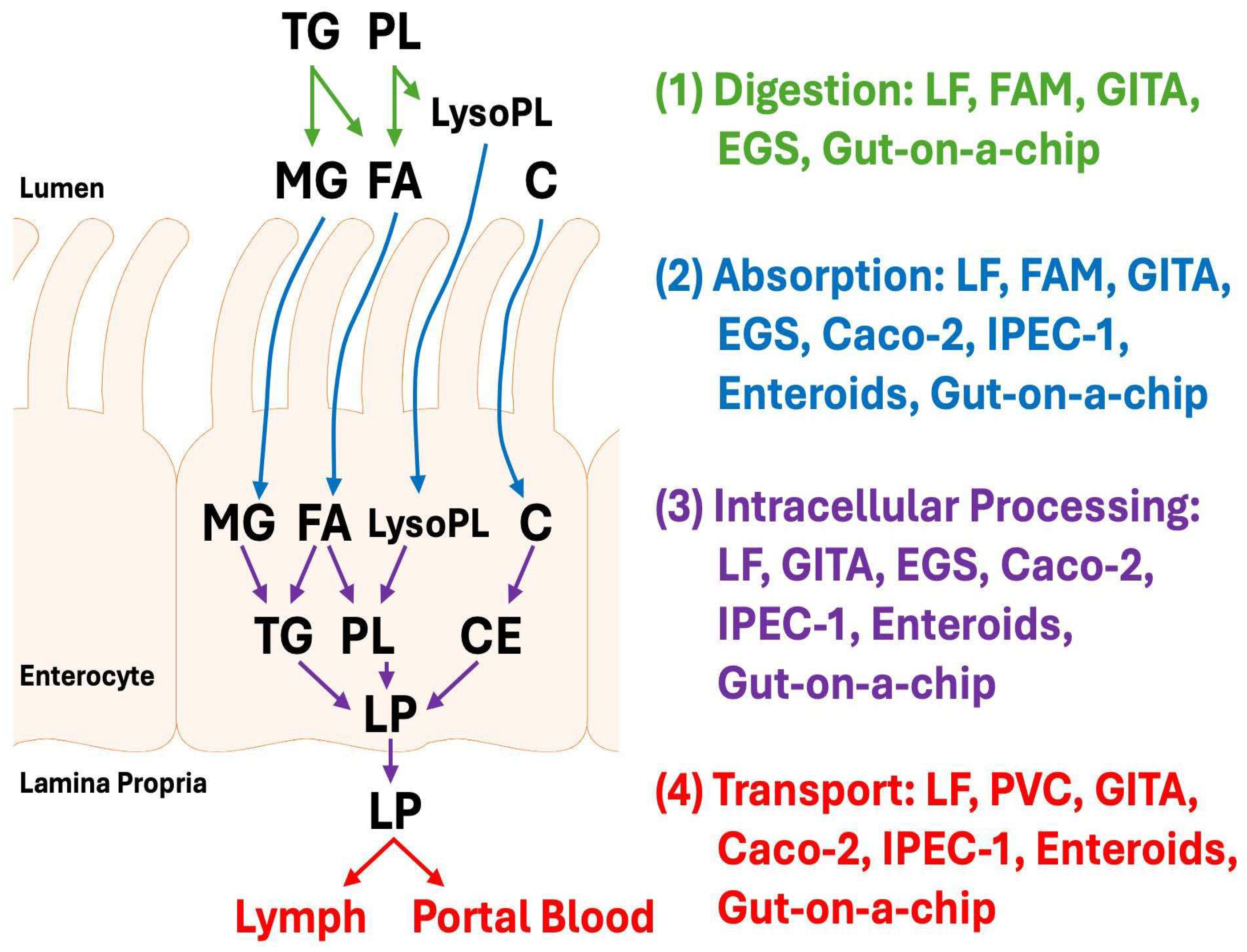 Nauli, A.M.; Phan, A.; Mai, K.; Tran, K.; Nauli, S.M. Guide for Selecting Experimental Models to Study Dietary Fat Absorption. Nutrients 2025, 17, 3644. https://doi.org/10.3390/nu17233644