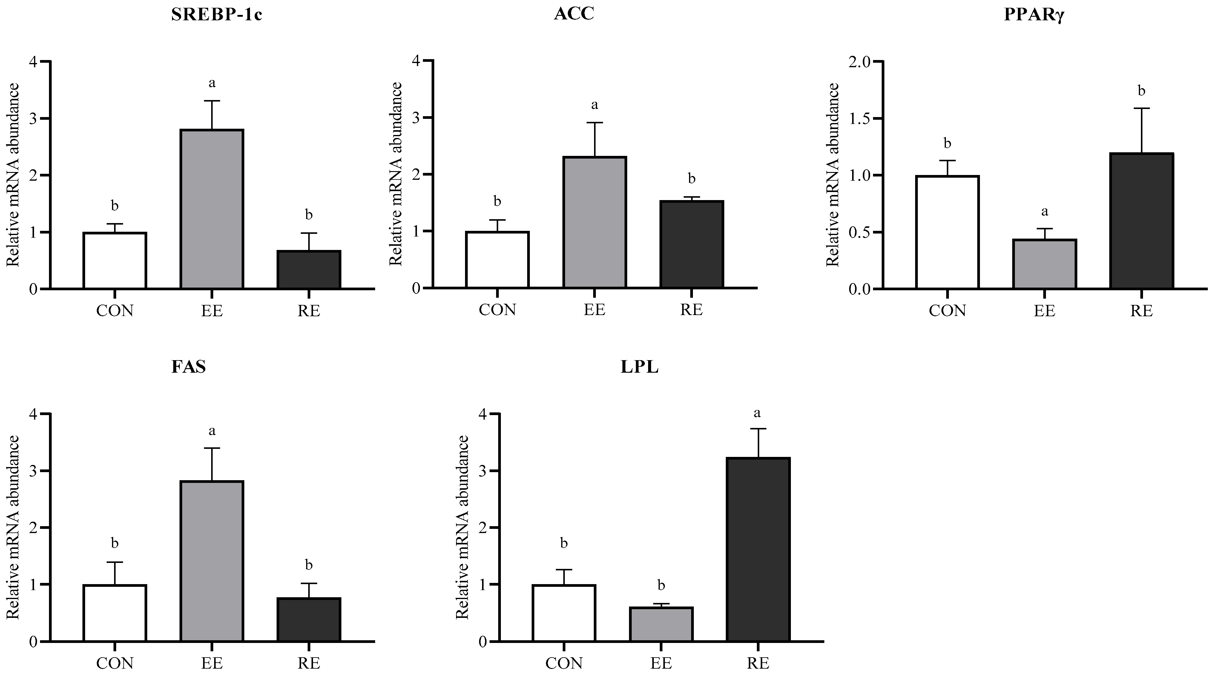 4.1. EE-Induction Strengthens Lipogenic Gene Expression and Bile Acid Metabolism May Account for Increased Body Fat Deposition and Hepatic Lipid Accumulation in Ningxiang Pigs