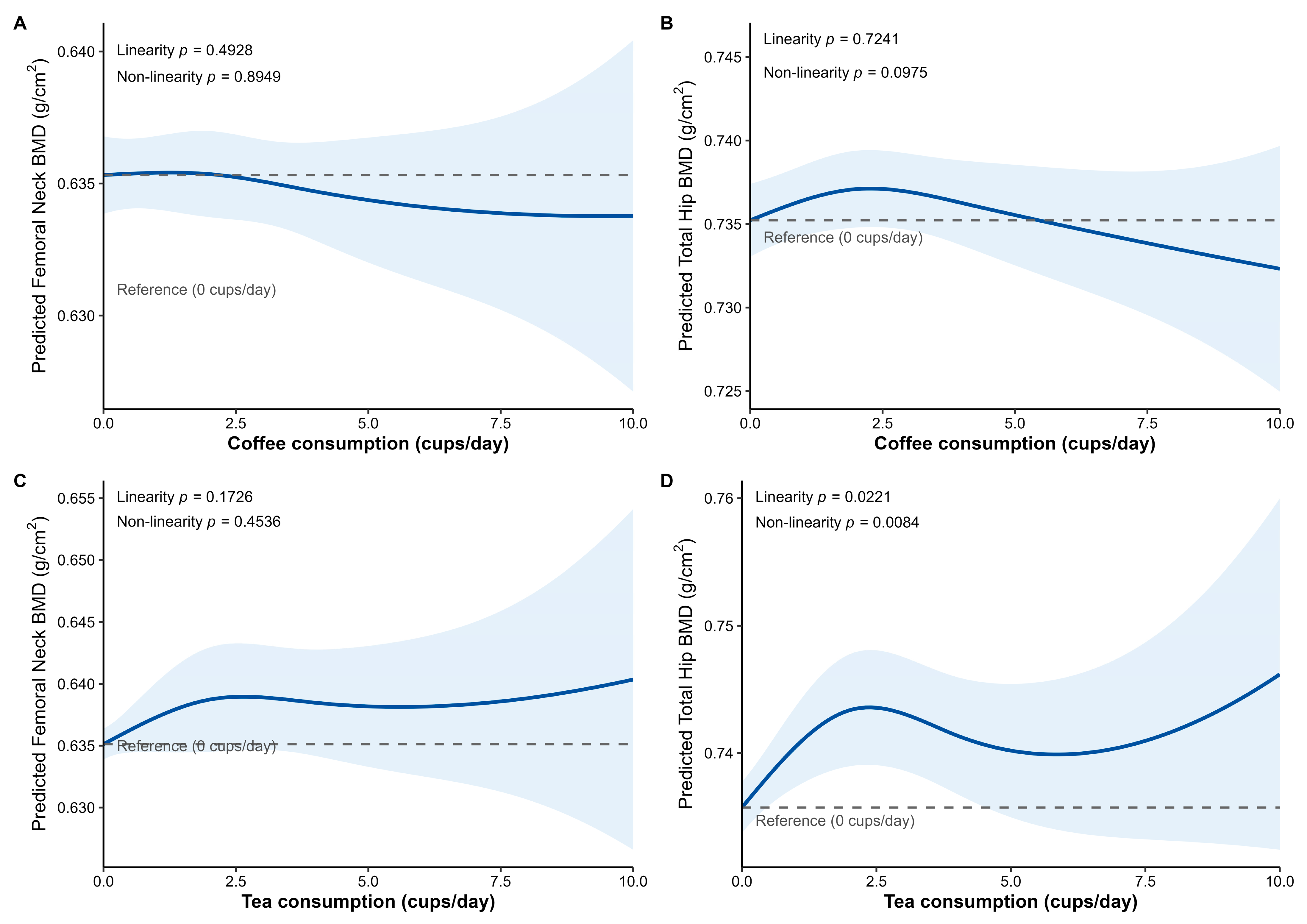 Chicago/Turabian StyleLiu, Ryan Yan, and Enwu Liu. 2025. "Longitudinal Association of Coffee and Tea Consumption with Bone Mineral Density in Older Women: A 10-Year Repeated-Measures Analysis in the Study of Osteoporotic Fractures" Nutrients 17, no. 23: 3660. https://doi.org/10.3390/nu17233660