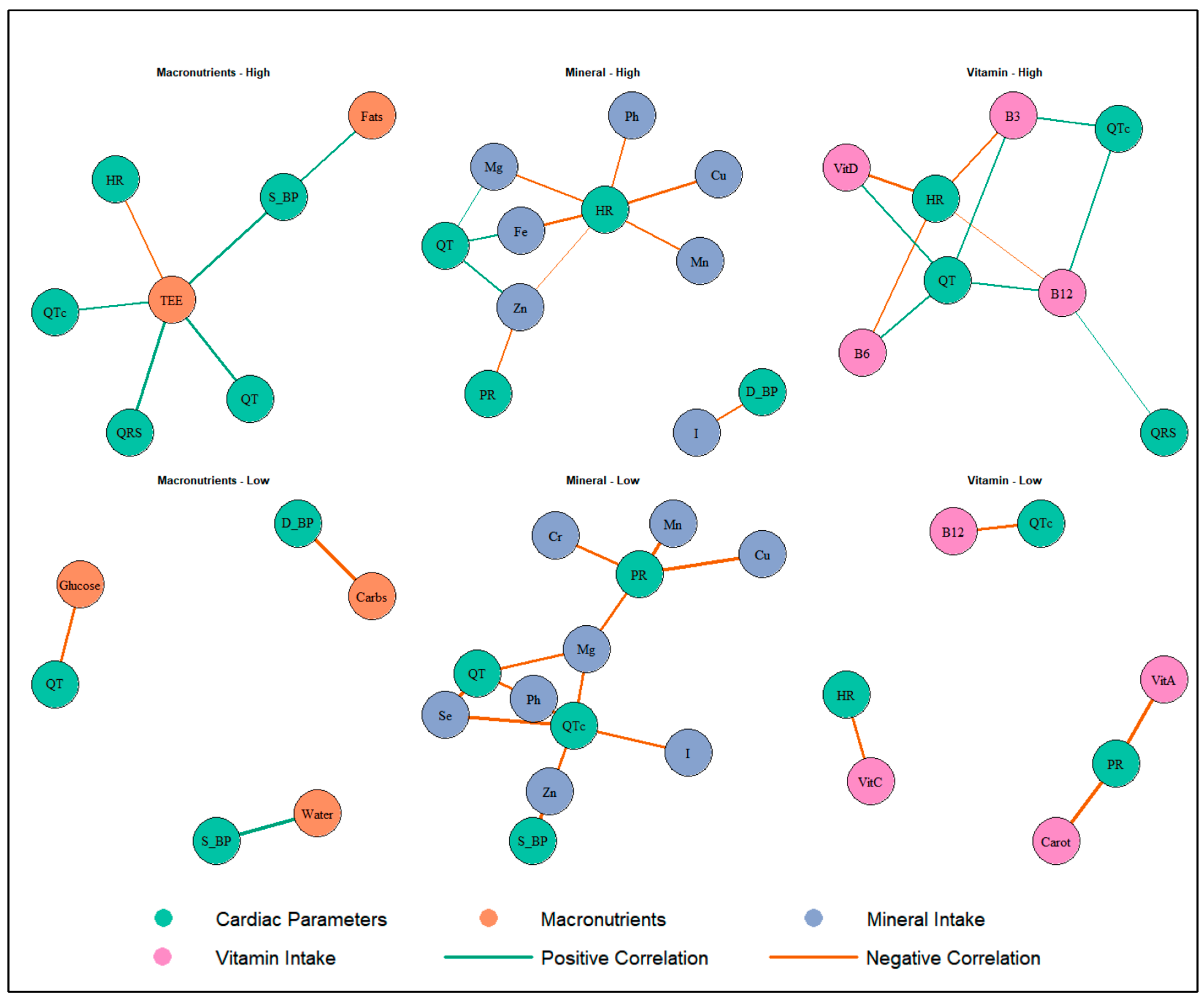 | Nutrient | Heart Rate | PR | QRS | QT | QTc | Diastolic Pressure | Systolic Pressure |