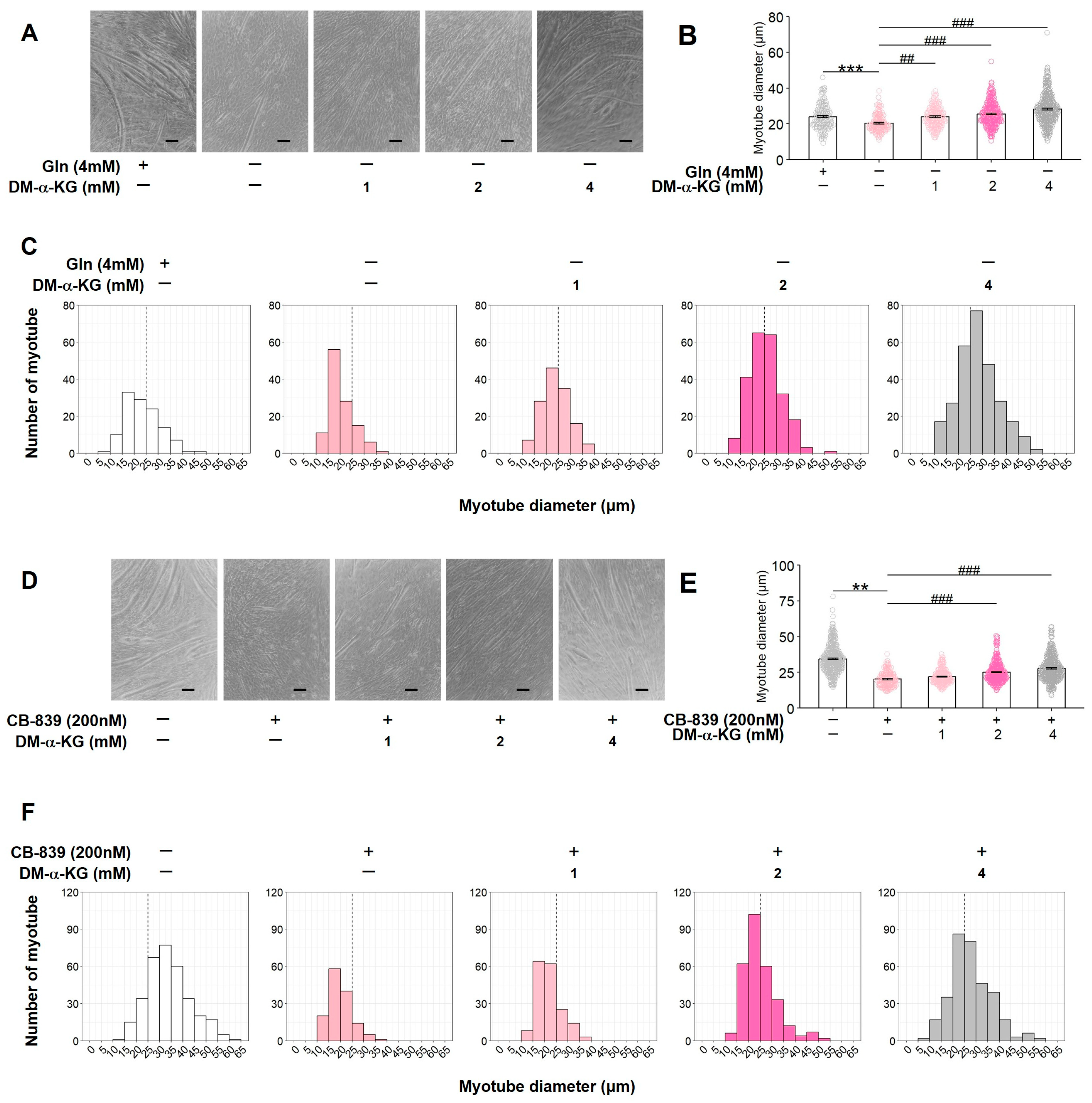 3.5. DM-α-KG Restores the Inhibition of C2C12 Myotube Formation Caused by Gln Deficiency or GLS Inactivation