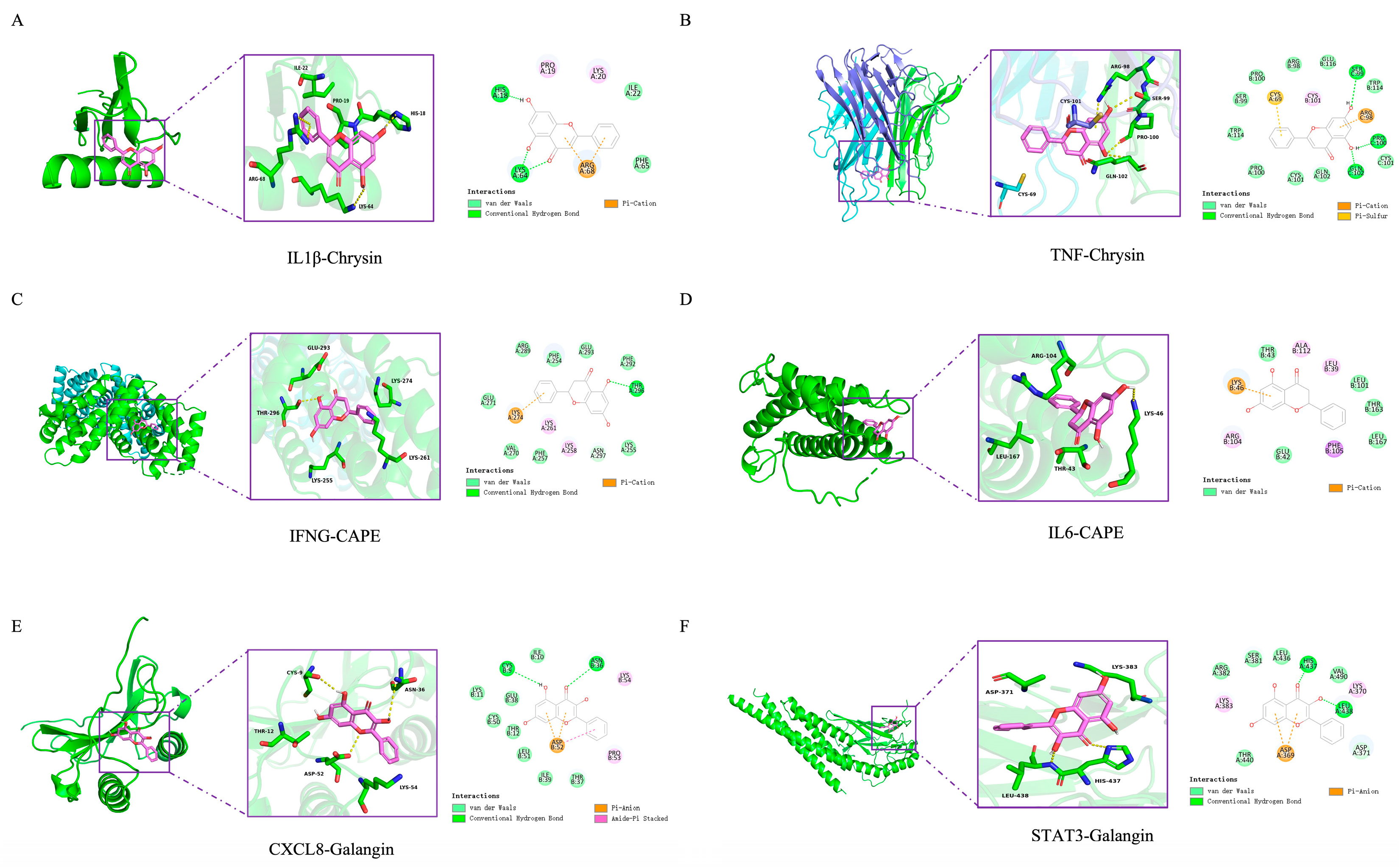 3.6. Molecular Docking of EECP’s Key Components and Key Targets