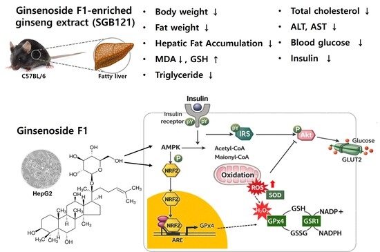 APA StyleChang, B. Y., Kim, I., Park, H., Kim, S., & Kim, S. Y. (2025). Protective Role of Ginsenoside F1-Enriched Extract (SGB121) in Metabolic Dysfunction-Associated Fatty Liver Disease (MAFLD). Nutrients, 17(23), 3693. https://doi.org/10.3390/nu17233693