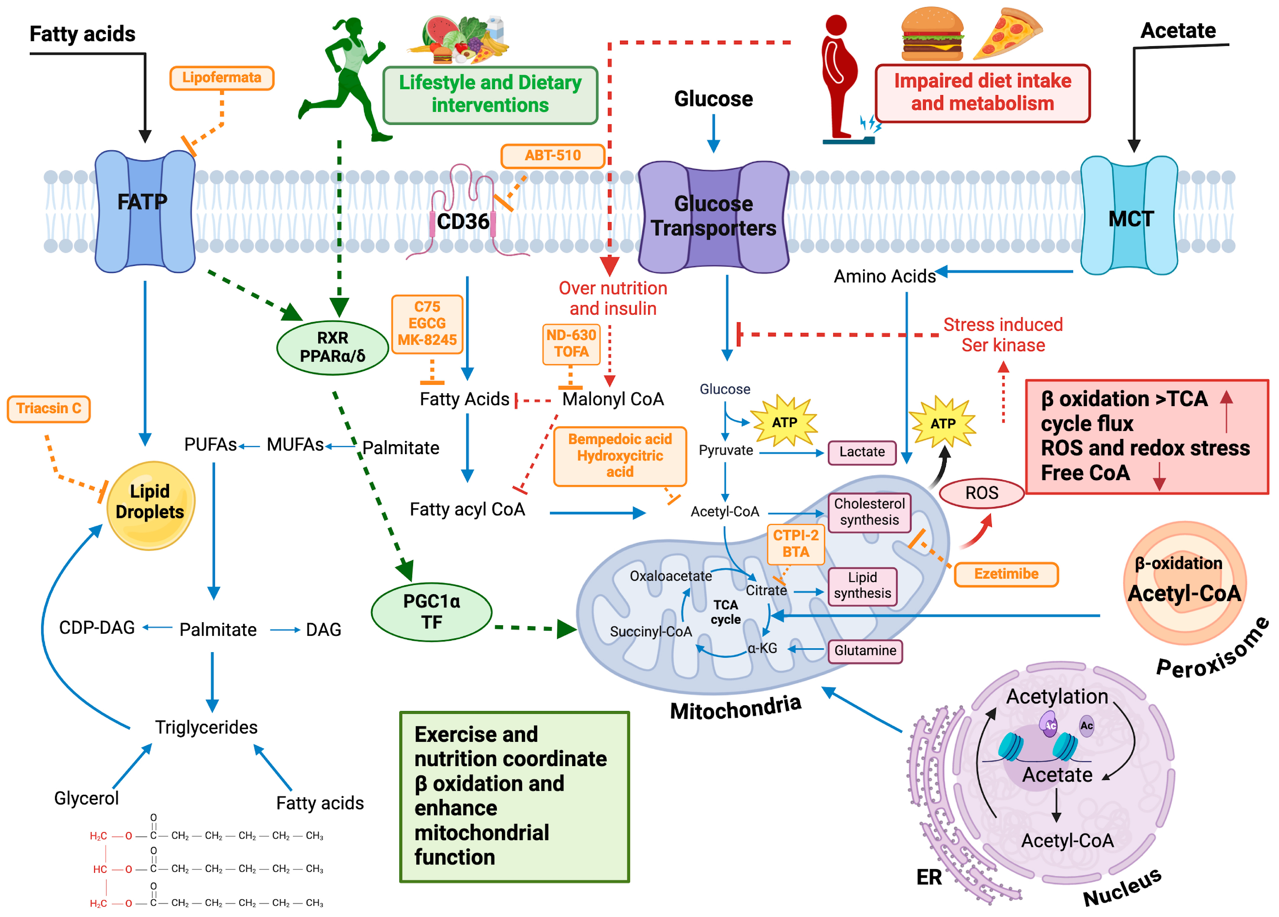 | ATP Citrate Lyase (ACL) [141] | Catalyzes the conversion of citrate to acetyl-CoA | Bempedoic Acid | Hypercholesterolemia |