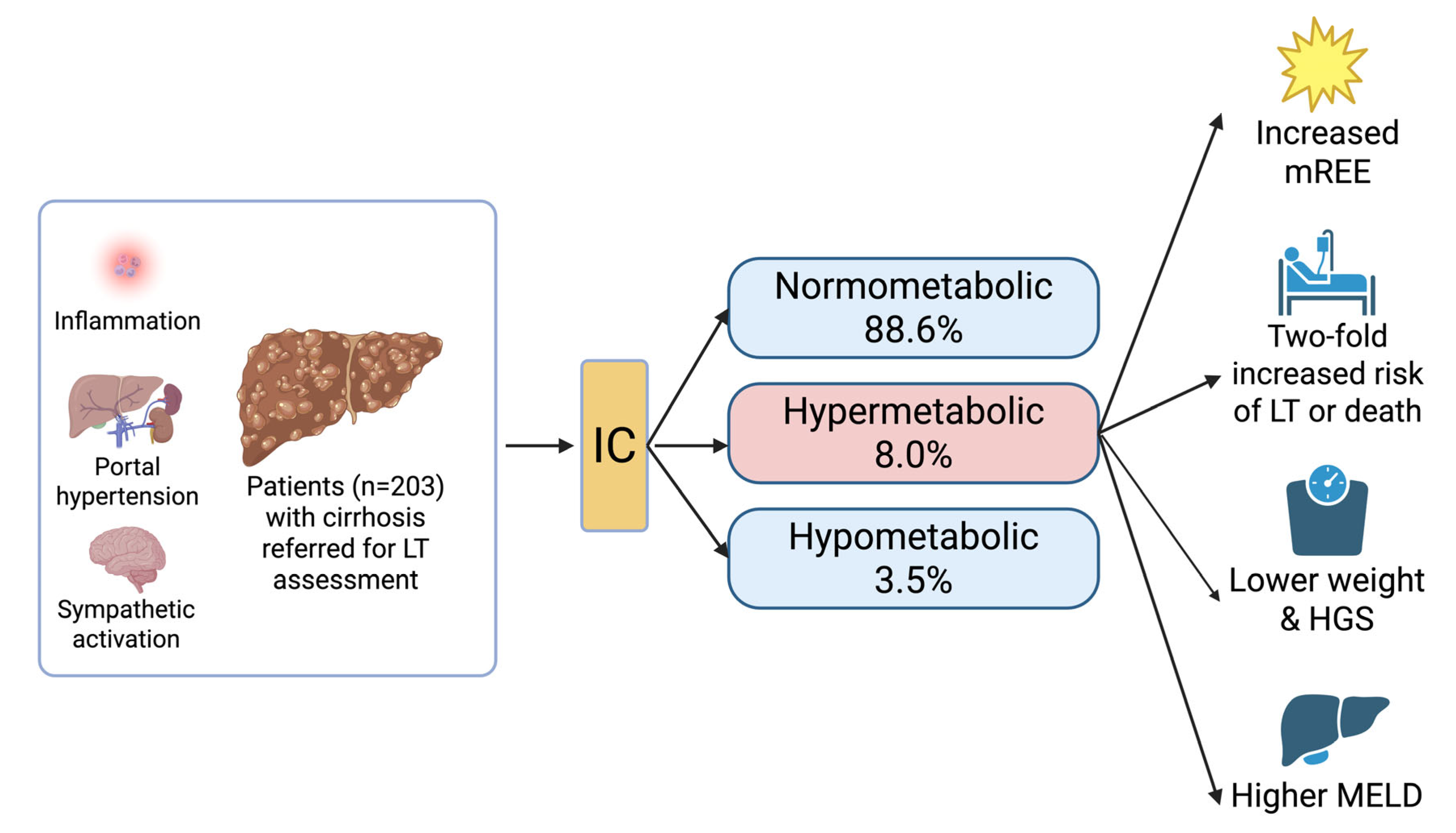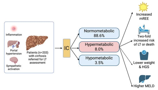 - Mathur, S.; Peng, S.; Gane, E.J.; McCall, J.L.; Plank, L.D. Hypermetabolism predicts reduced transplant-free survival independent of MELD and Child-Pugh scores in liver cirrhosis. Nutrition 2007, 23, 398–403. [Google Scholar] [CrossRef]