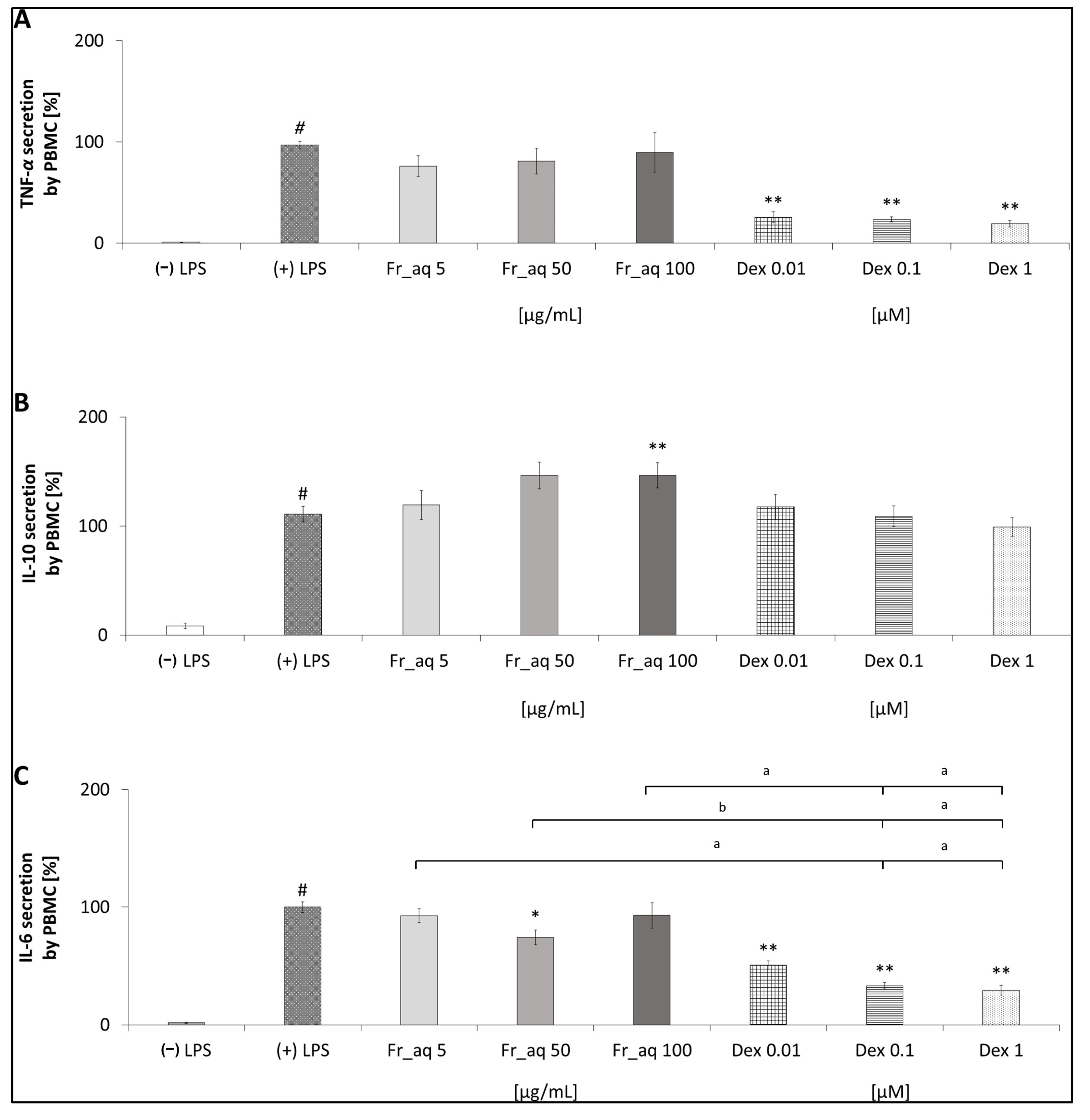 3.5. Secretion of Cytokines in PBMC After the CJ Fruit Extract Treatment