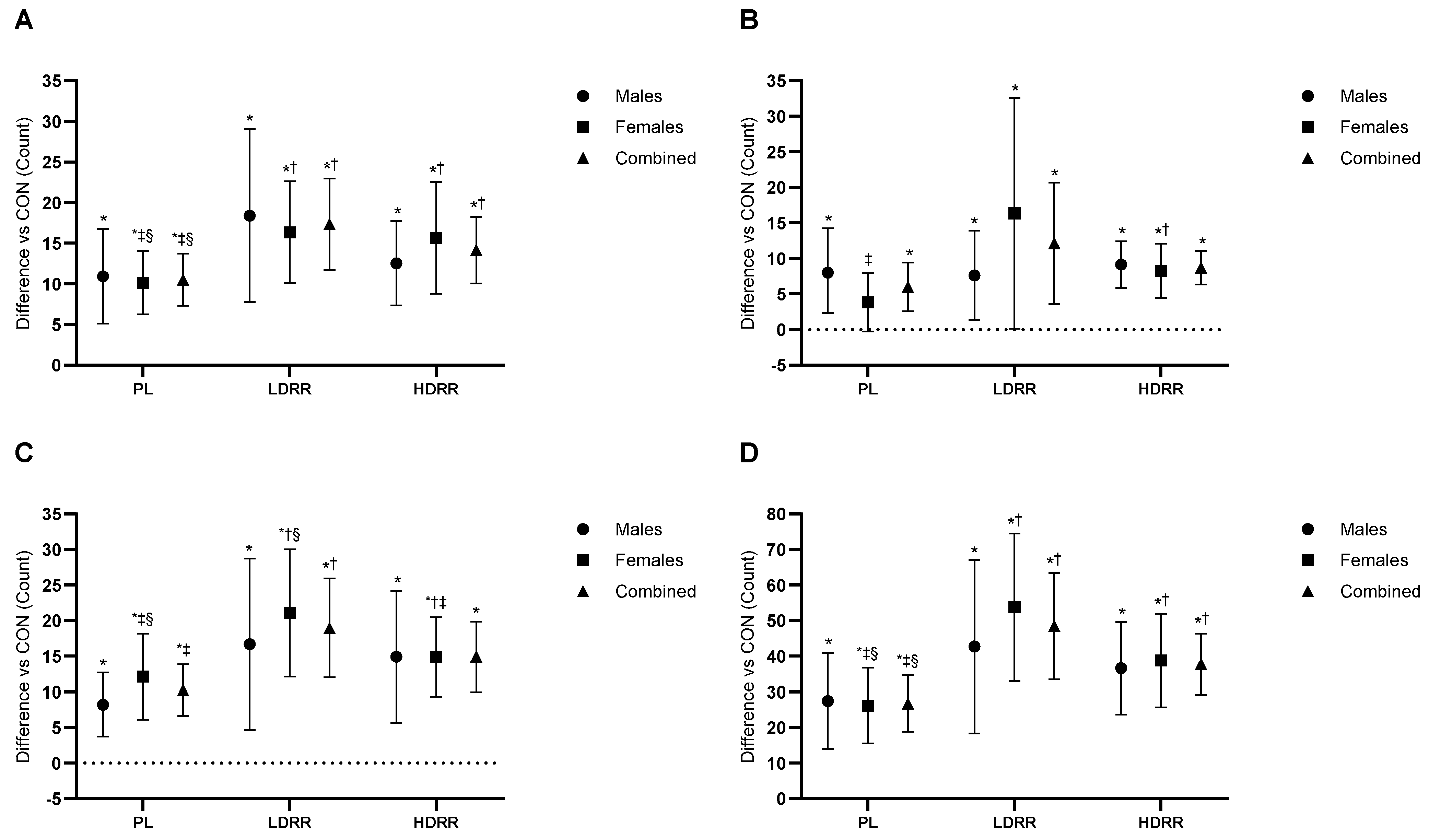 | LDRR | 169.7 ± 49.6 | 190.4 ± 52.8 | 150.6 ± 39.0 | ||