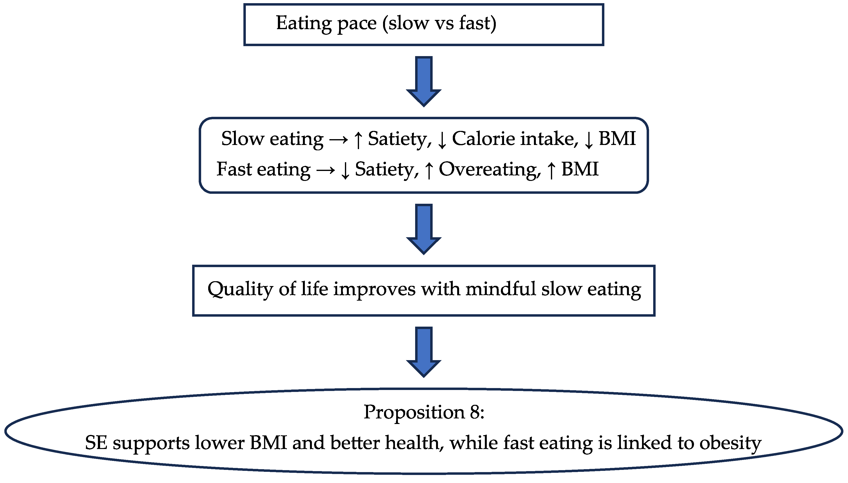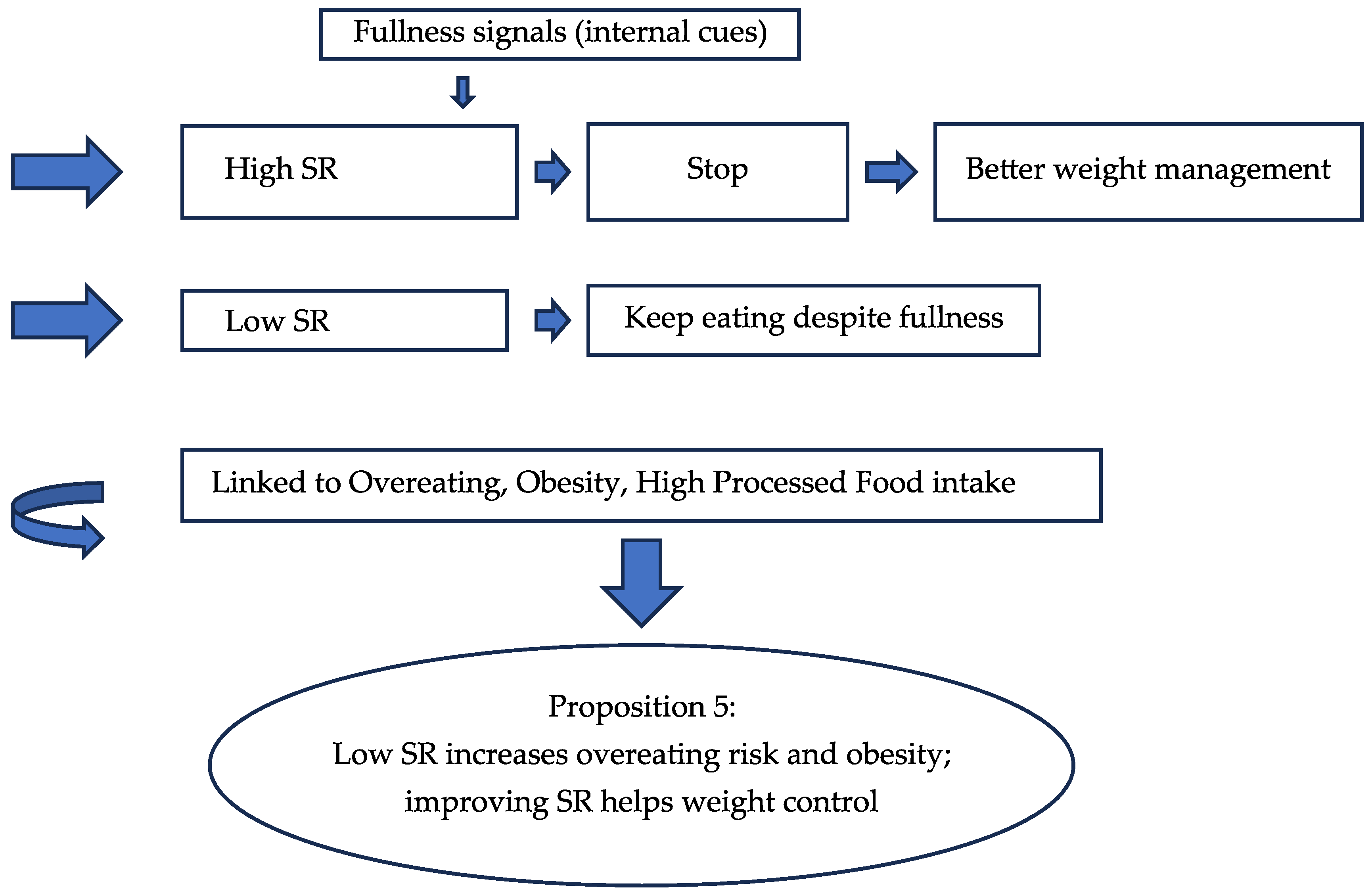| Slowness in Eating (SE) | SR, EUE | Positively linked—slow eaters are more responsive to fullness and prone to emotional undereating |